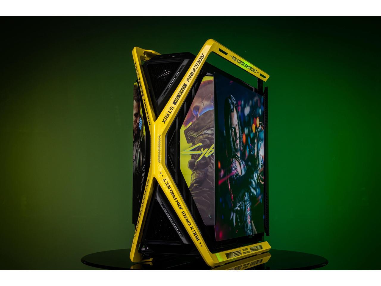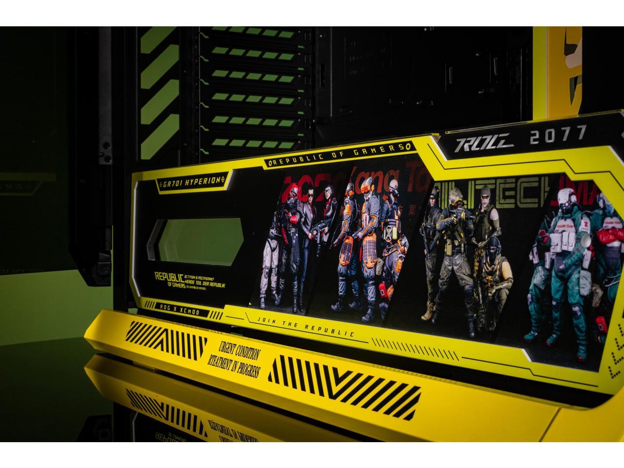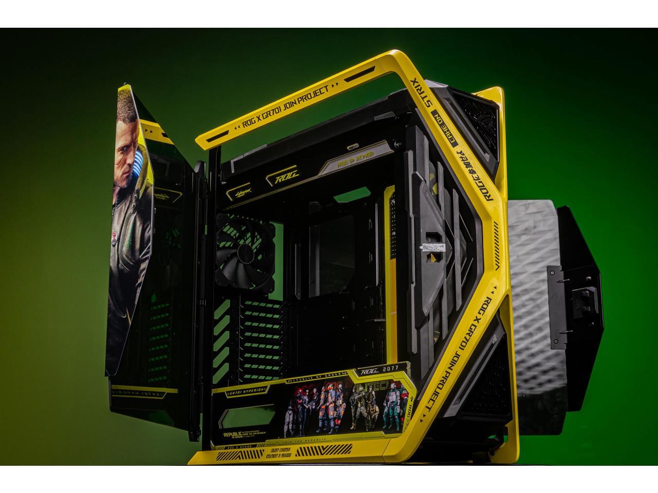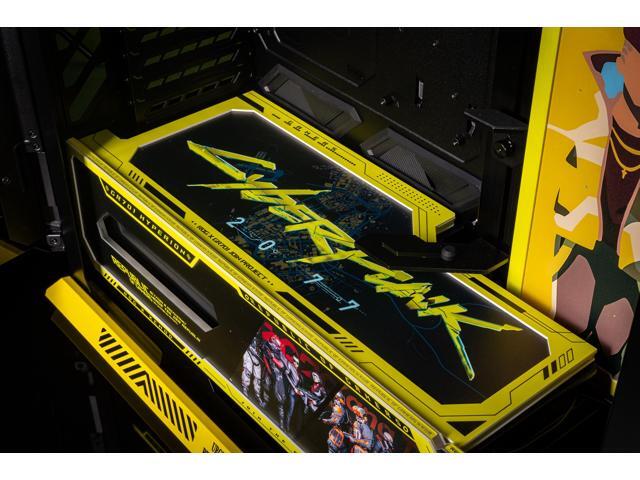 Corn Electronics GR701 E-ATX computer case, 420 mm dual radiator support, four 140 mm fans, metal GPU holder, component storage, ARGB fan hub, 60W fast charging-Cyberpunk(Yellow)