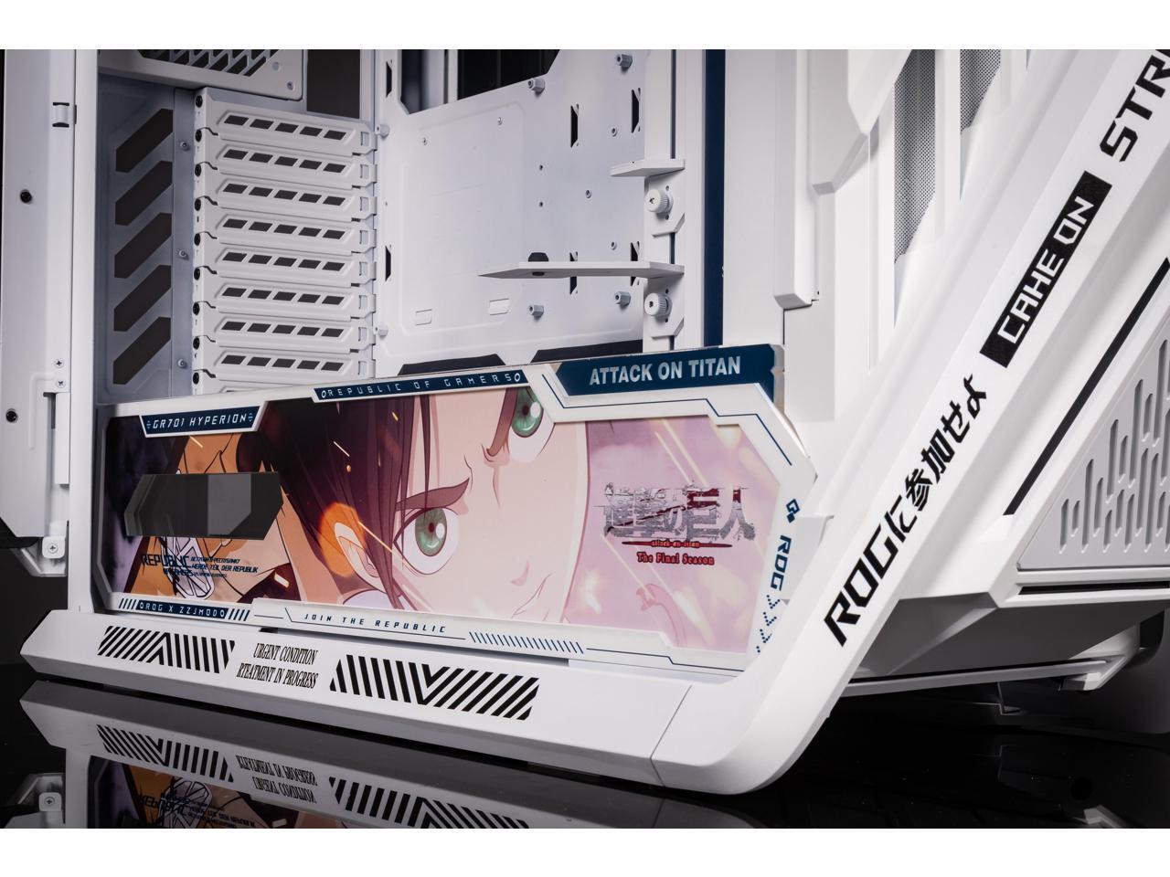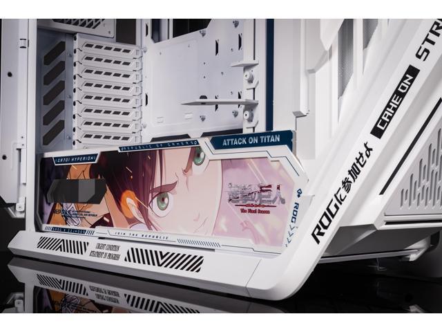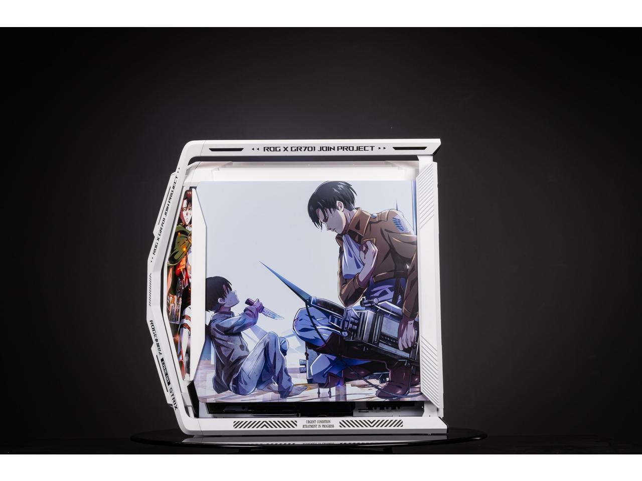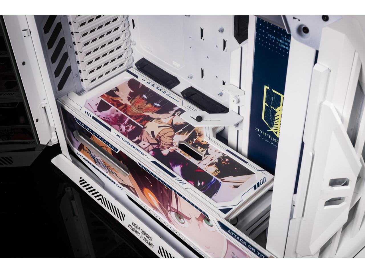 Corn Electronics GR701 E-ATX computer case, 420 mm dual radiator support, four 140 mm fans, metal GPU holder, component storage, ARGB fan hub, 60W fast charging Attack on titan-White