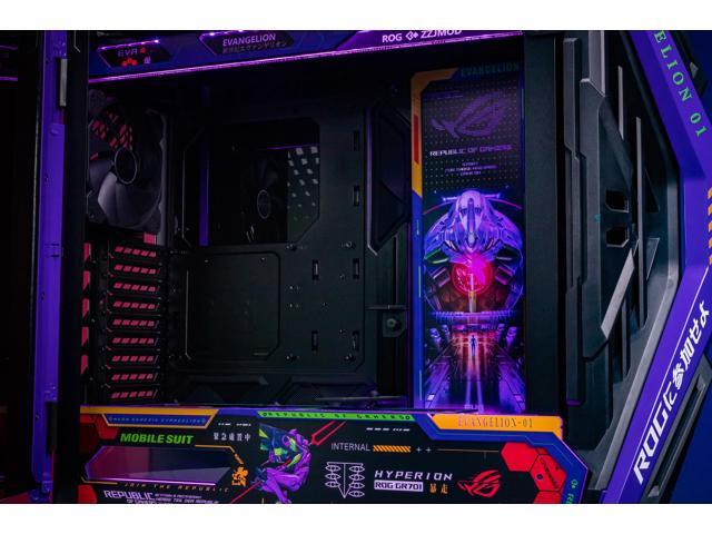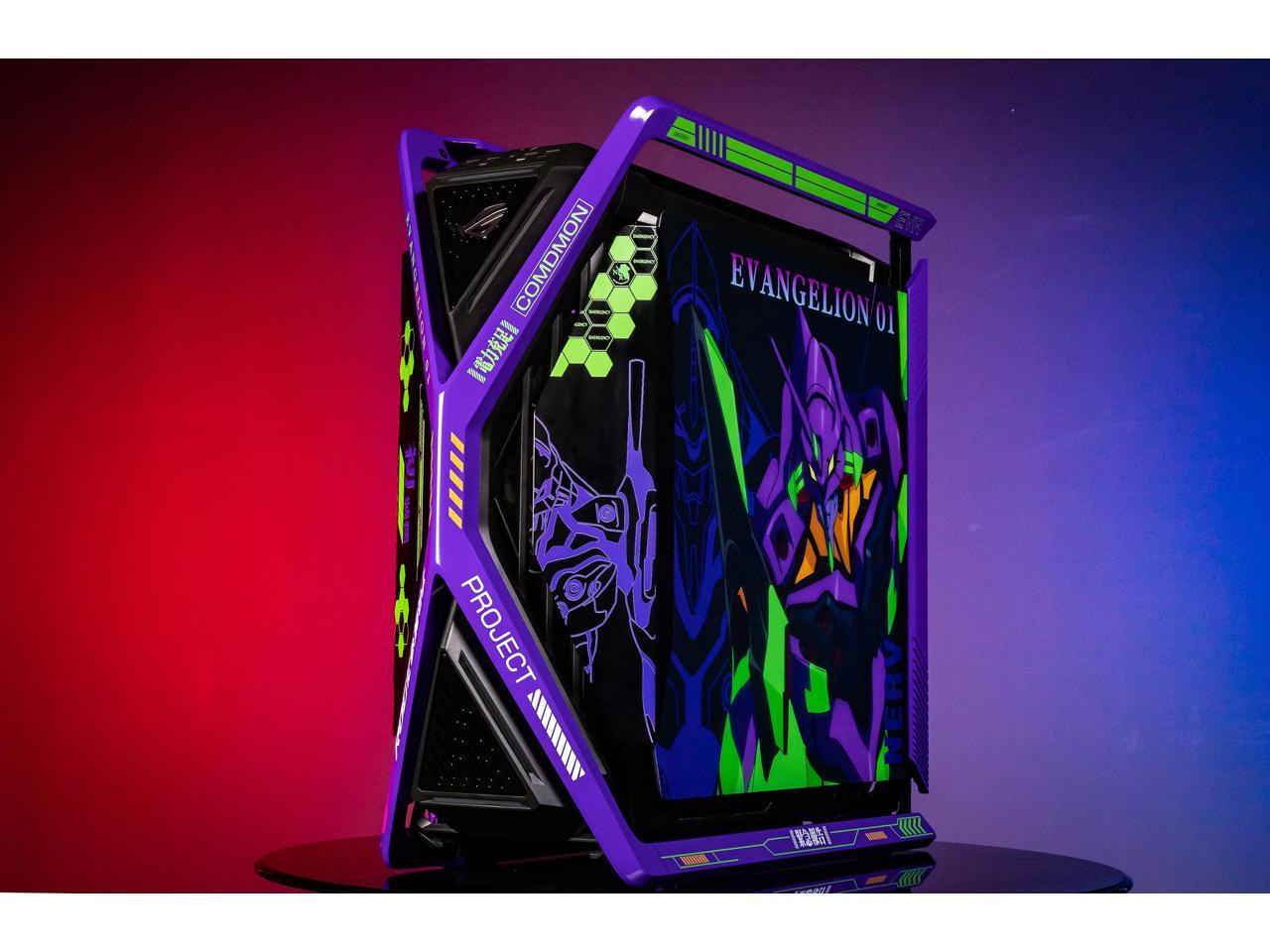 Corn Electronics GR701 E-ATX computer case, 420 mm dual radiator support, four 140 mm fans, metal GPU holder, component storage, ARGB fan hub, 60W fast charging-Evangelion EVA-01(Purple)