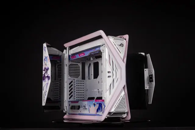 Corn Electronics GR701 E-ATX computer case, 420 mm dual radiator support, four 140 mm fans, metal GPU holder, component storage, ARGB fan hub, 60W fast charging-Rem(Pink)