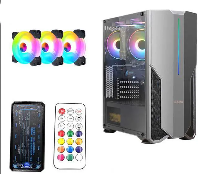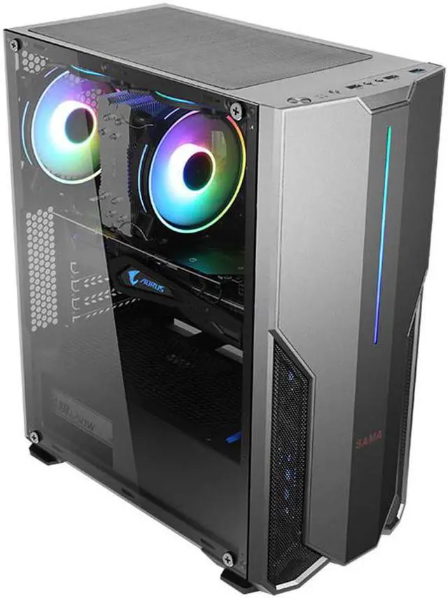 SAMA K1 Gaming Case Tempered Glass Window Mid Tower Case ATX/M-ATX/ITX with 3 RGB Fans