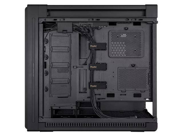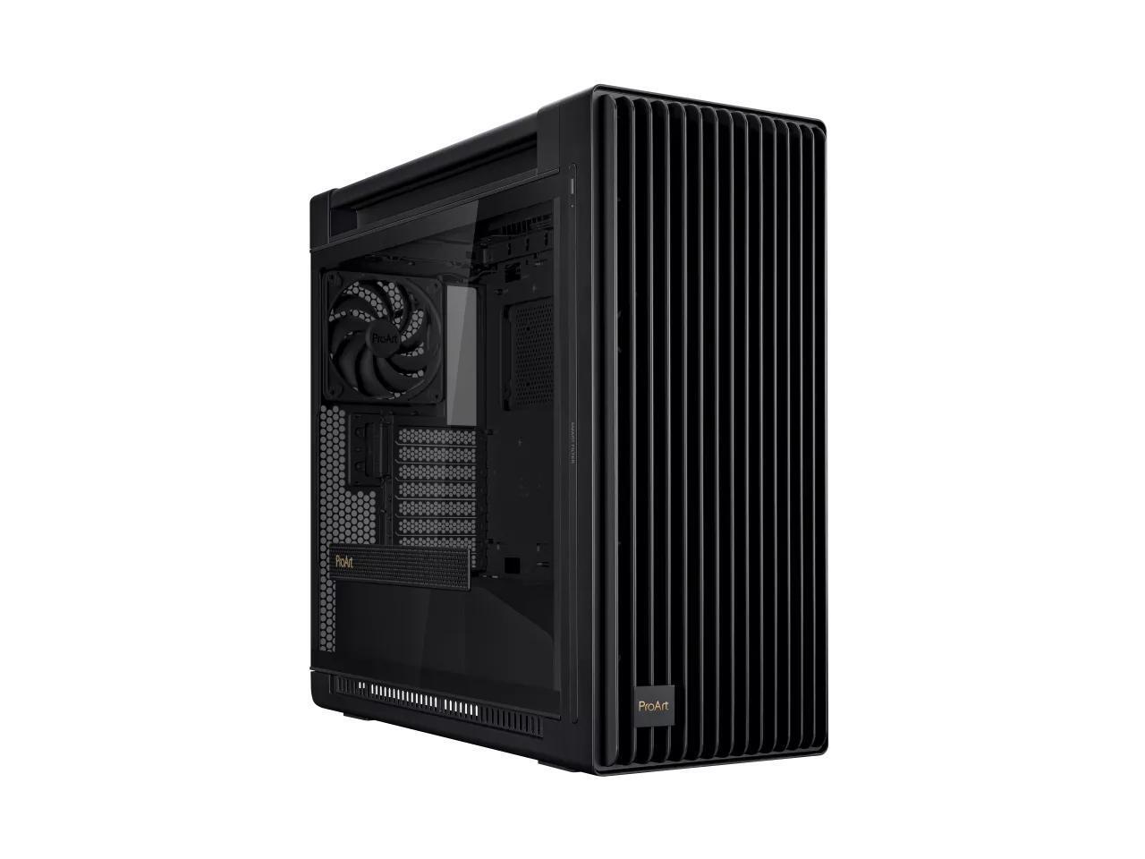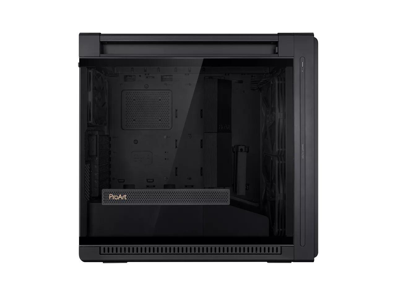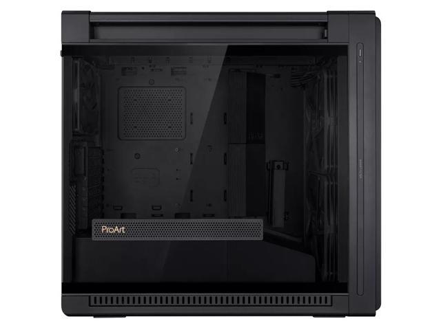 ProArt PA602 E-ATX computer case, 420 mm radiator support, one 140 mm and two 200mm pre-installed system fans, front panel IR dust indicator, power lock latch, tool-less PCIe mounting, USB 20Gbps