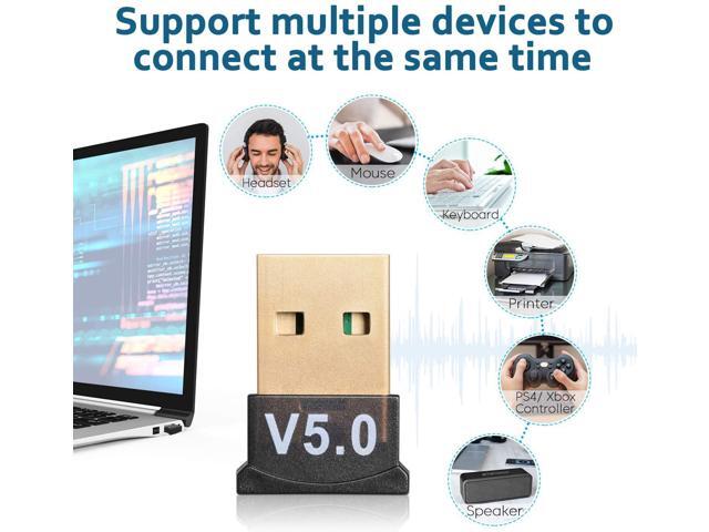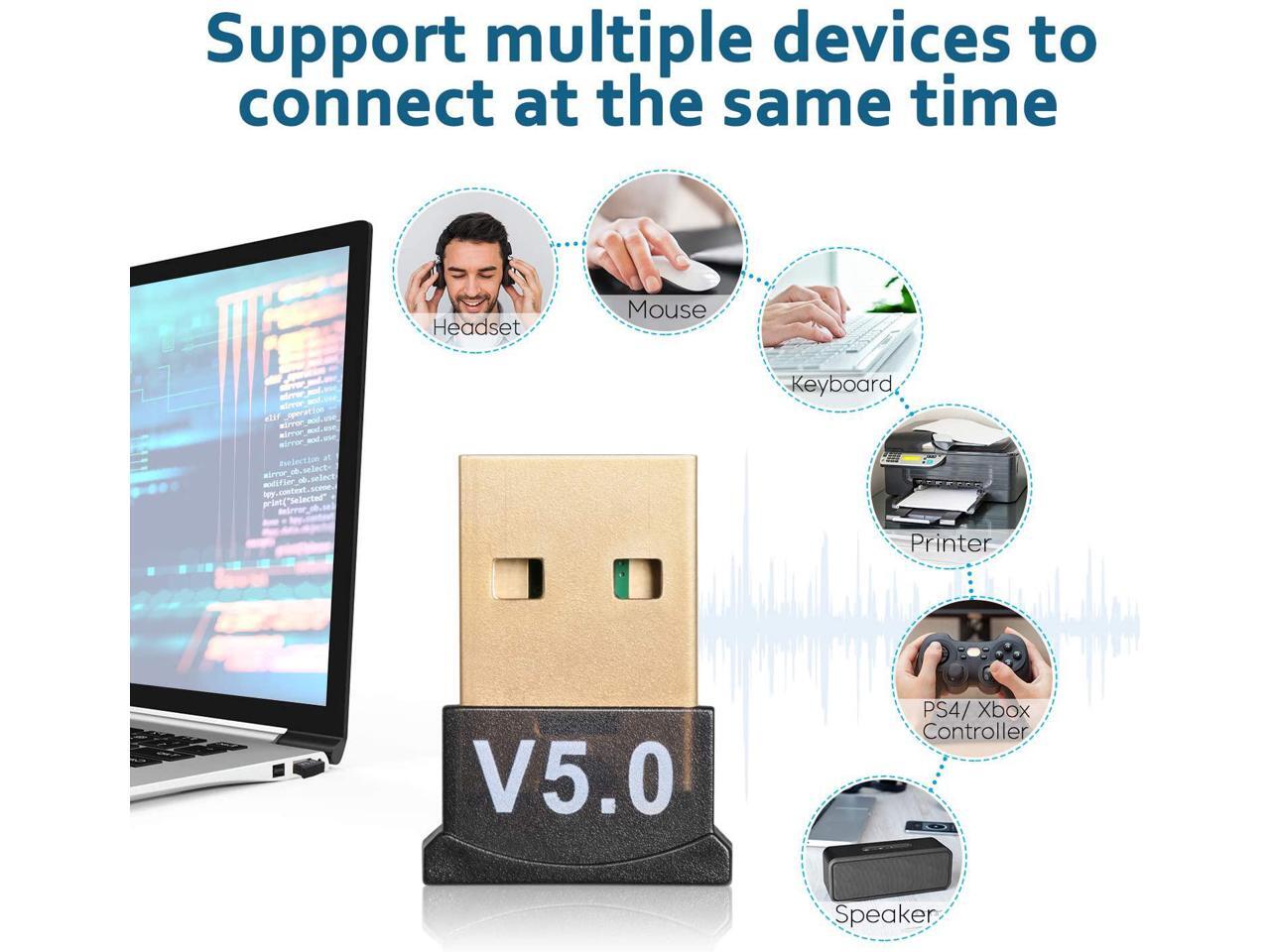 USB Bluetooth 5.0 Adapter for PC Win10/8.1/8/7/XP/Vista, Desktop Computer Bluetooth Dongle Receiver/Transmitter for Laptop Support to Connect Headset, Mouse, Keyboard, Printer, Speaker