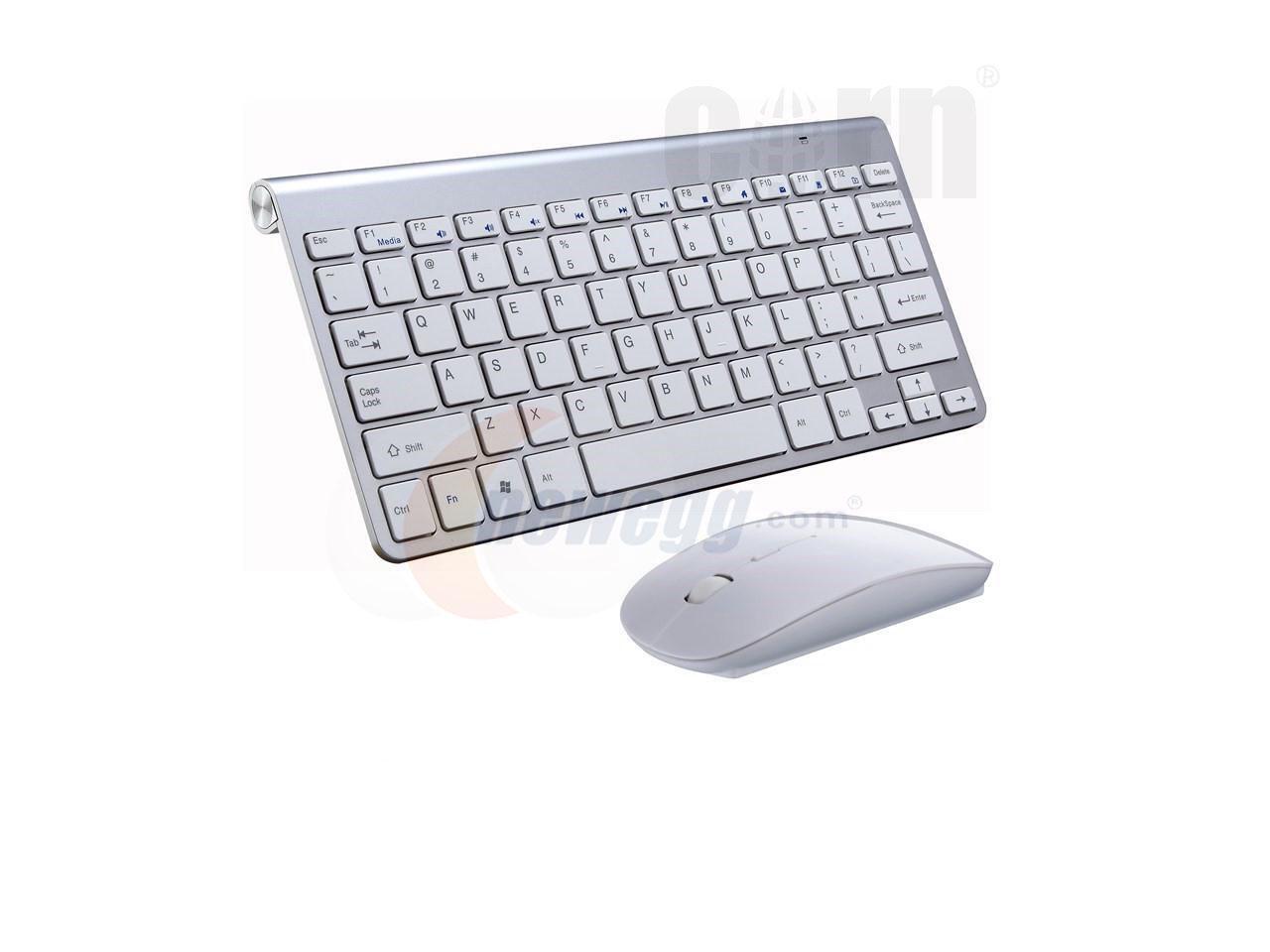 CORN Silver Mini Keyboard & Mouse With RF 2.4GHZ Wireless Connection by a USB Nano Receiver, and Super Thin Design