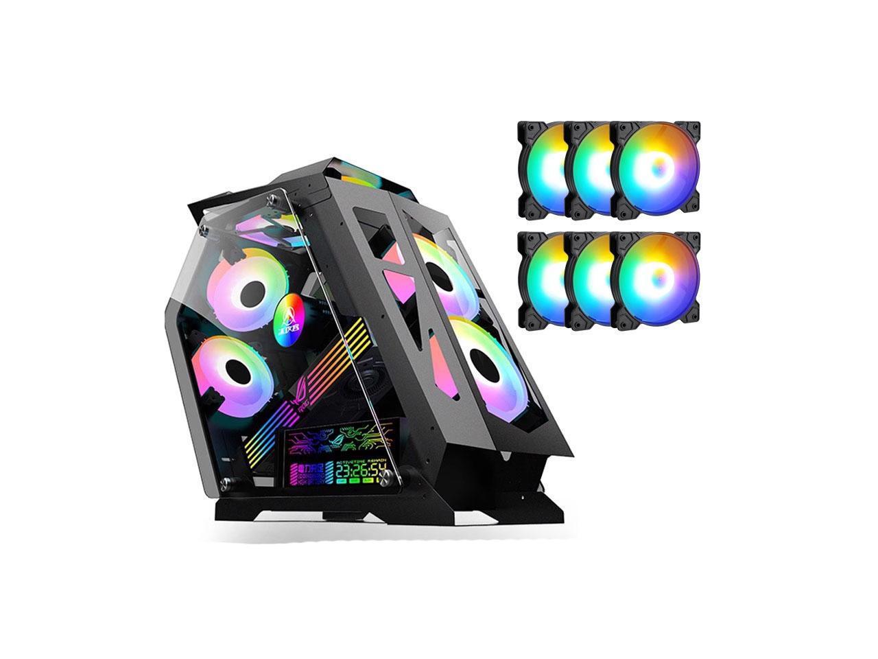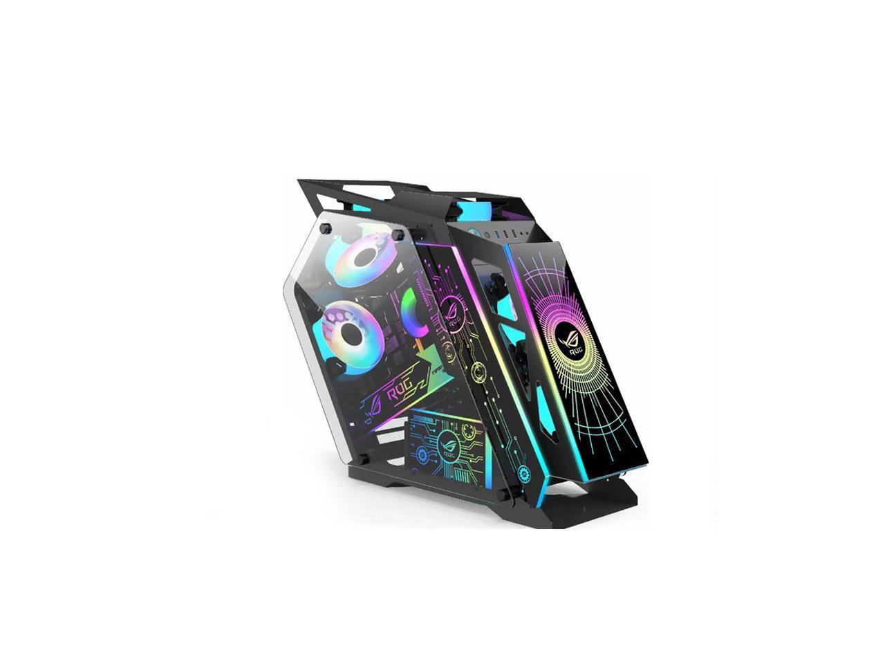 CORN Opened(Not Dustproof) PC Case, Tempered Glass Gaming Desktop Computer Case, Micro ATX/Mini ITX with ROG Light Board and 120mm Fan*6, Support 240 Liquid Cooling, Unique Appearance