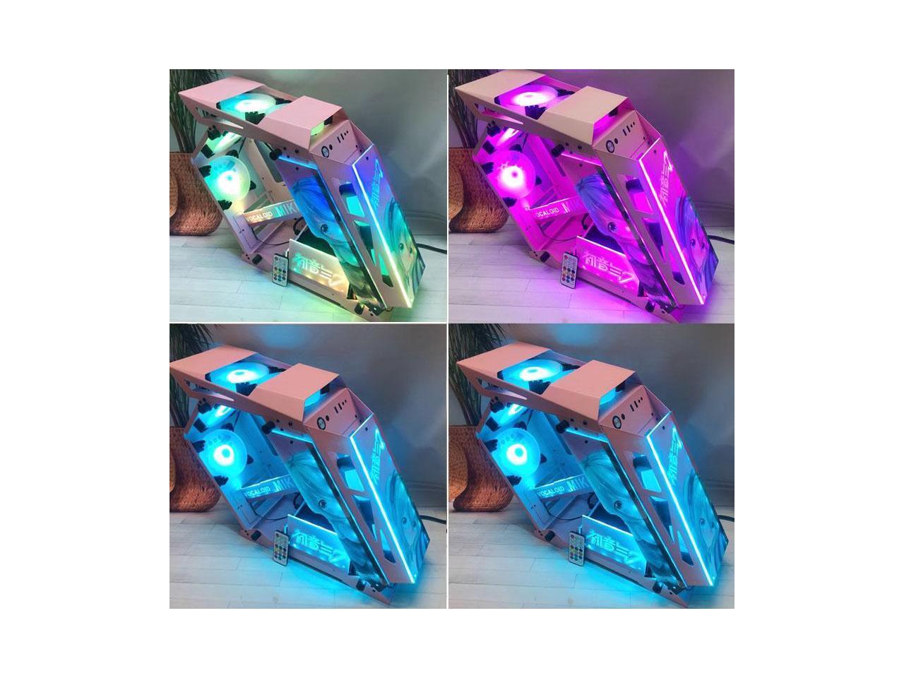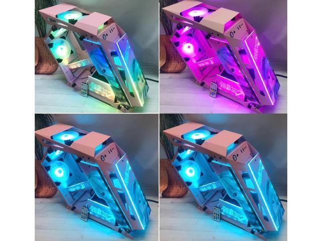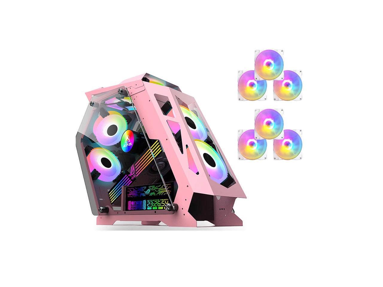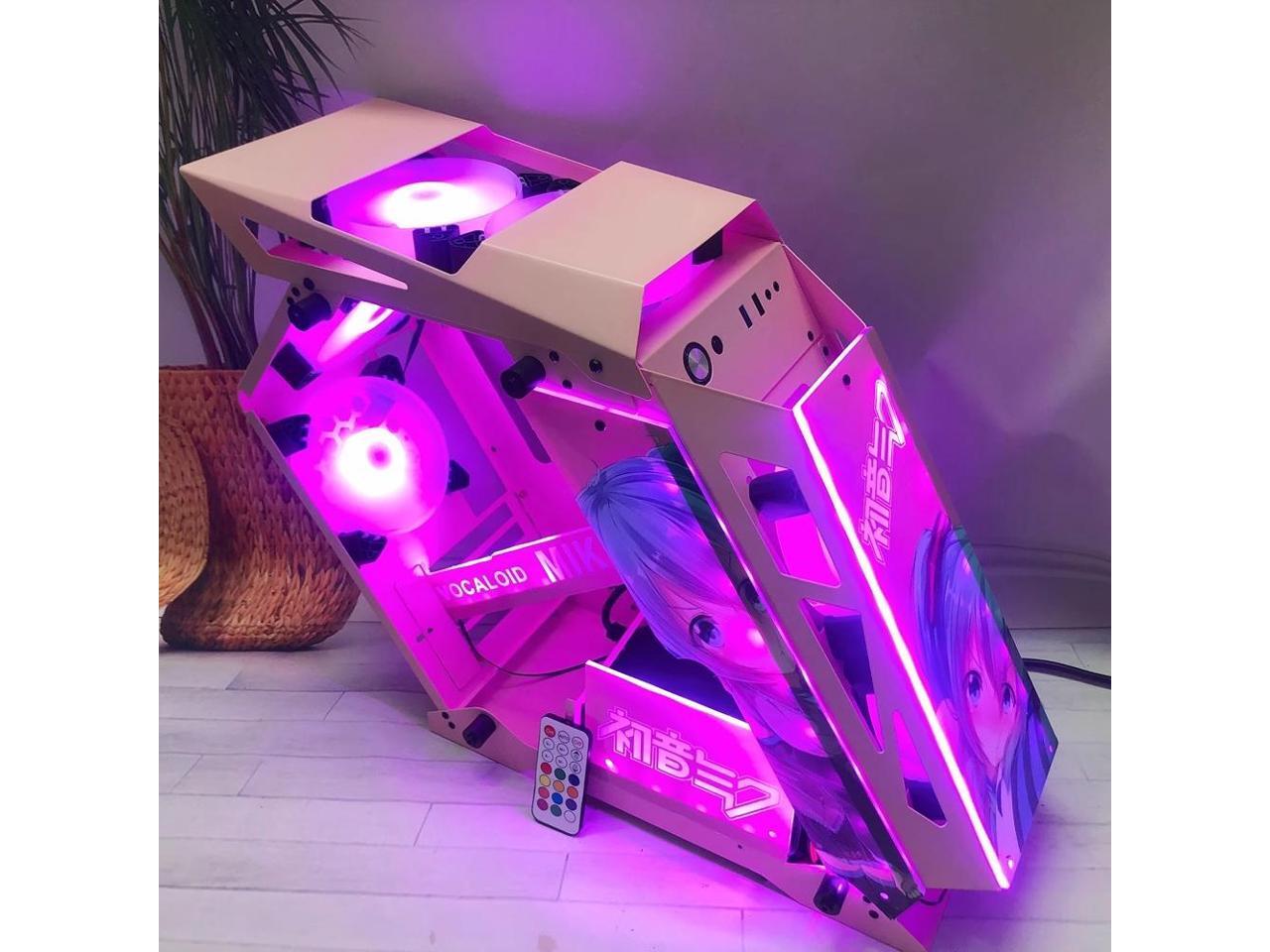 CORN Opened(Not Dustproof) PC Case, Tempered Glass Gaming Desktop Computer Case, Micro ATX/Mini ITX with Light Board(Miku) and 120mm Fan*6, Support 240 Liquid Cooling, Unique Appearance Pink