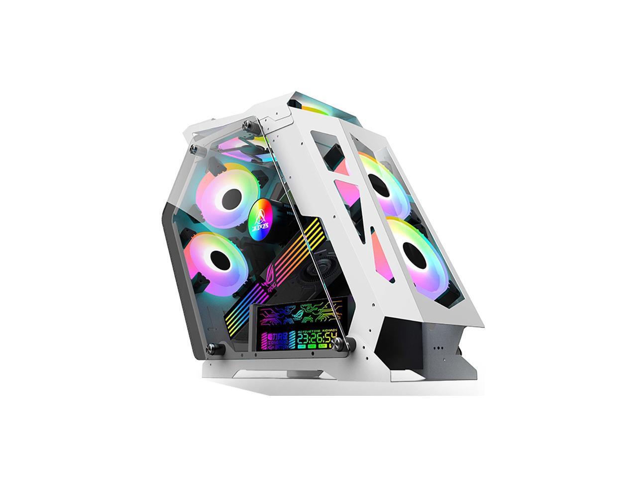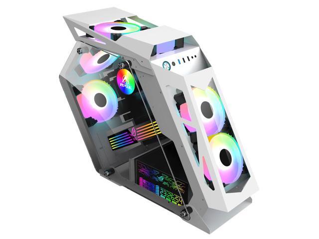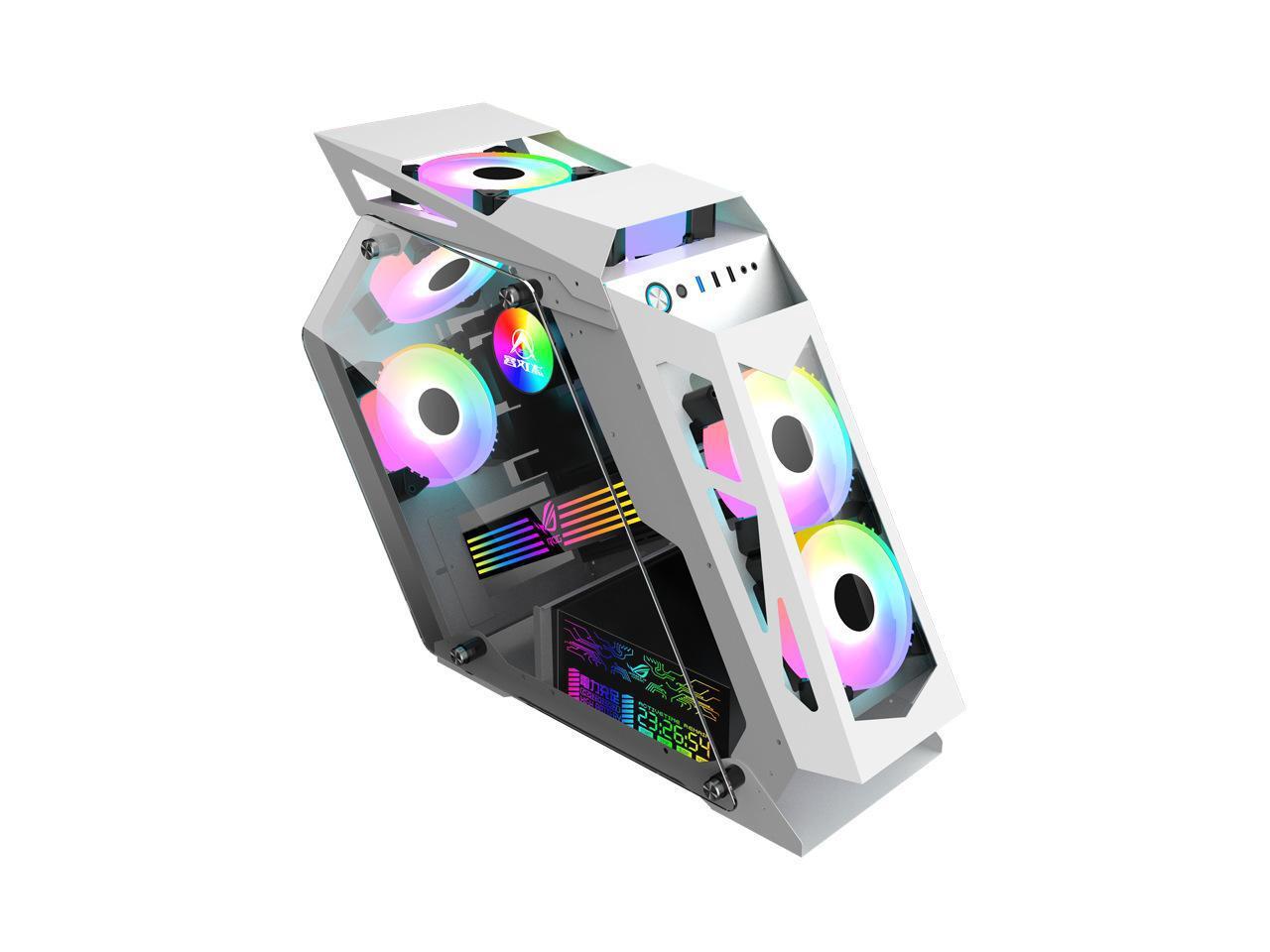 CORN Alien Irregular Opened(Not Dustproof) PC Case, Tempered Glass Gaming Desktop Computer Case, Micro ATX/Mini ITX, Support 240 Liquid Cooling and 120mm Fan*6(Not included), Unique Appearance White