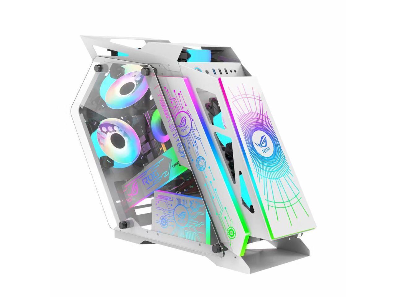 CORN Opened(Not Dustproof) PC Case, Tempered Glass Gaming Desktop Computer Case, Micro ATX/Mini ITX with ROG Light Board and 120mm Fan*6, Support 240 Liquid Cooling, Unique Appearance White