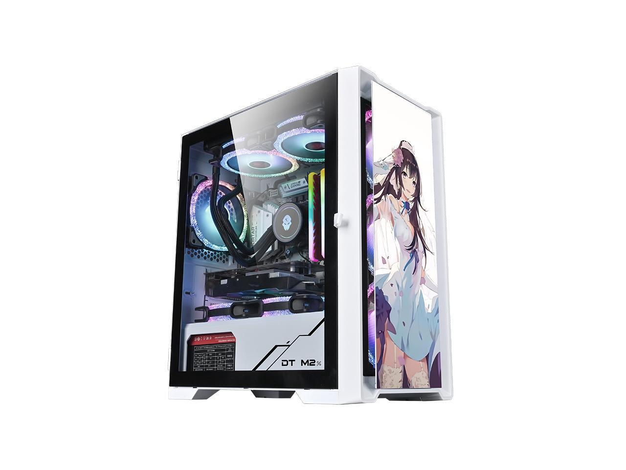 Peerless player Glass Side Transparent Case, Pull-Out Panoramic Side Transparent Tempered Glass Design, Magnetic Dust-Proof net, M-ATX Motherboard 240 Water-Cooled Computer Main Box,Sakura Edition