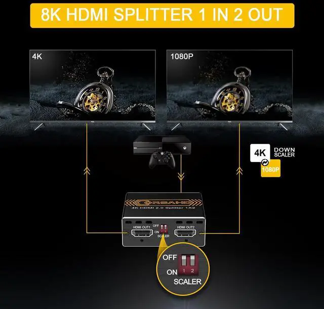 CORSAHD 4K@60Hz HDMI Splitter 1 in 2 out supports Ultra HD.