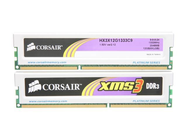 CORSAIR XMS3 12GB (6 x 2GB) 240-Pin DDR3 SDRAM DDR3 1333 (PC3 10666) Desktop Memory Model HX3X12G1333C9