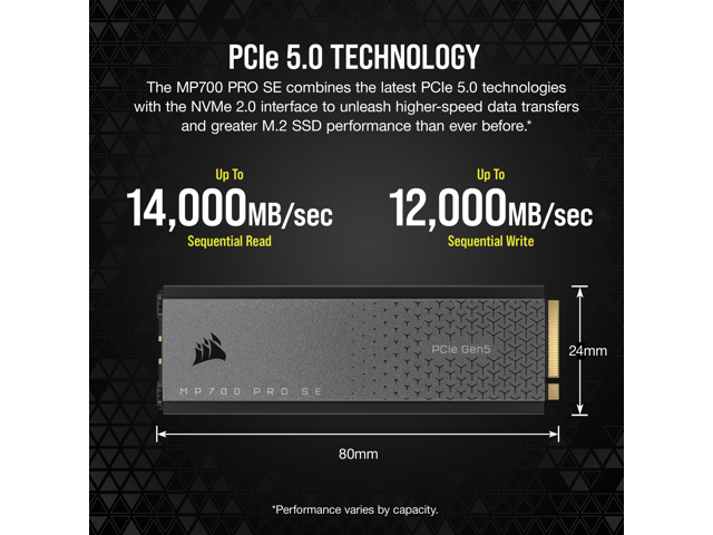 Corsair MP700 PRO SE M.2 2280 2TB PCI-Express 5.0 x4 3D TLC Internal Solid State Drive (SSD) CSSD-F2000GBMP700PROS