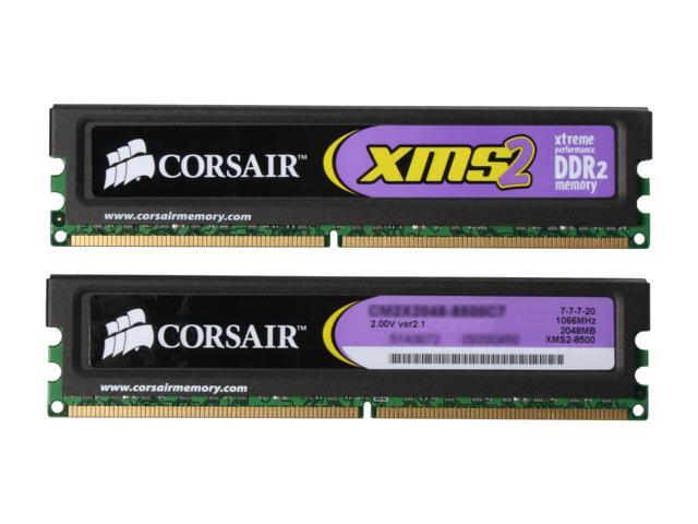 CORSAIR XMS2 4GB (2 x 2GB) 240-Pin DDR2 SDRAM DDR2 1066 (PC2 8500) Dual Channel Kit Desktop Memory Model TWIN2X4096-8500C7