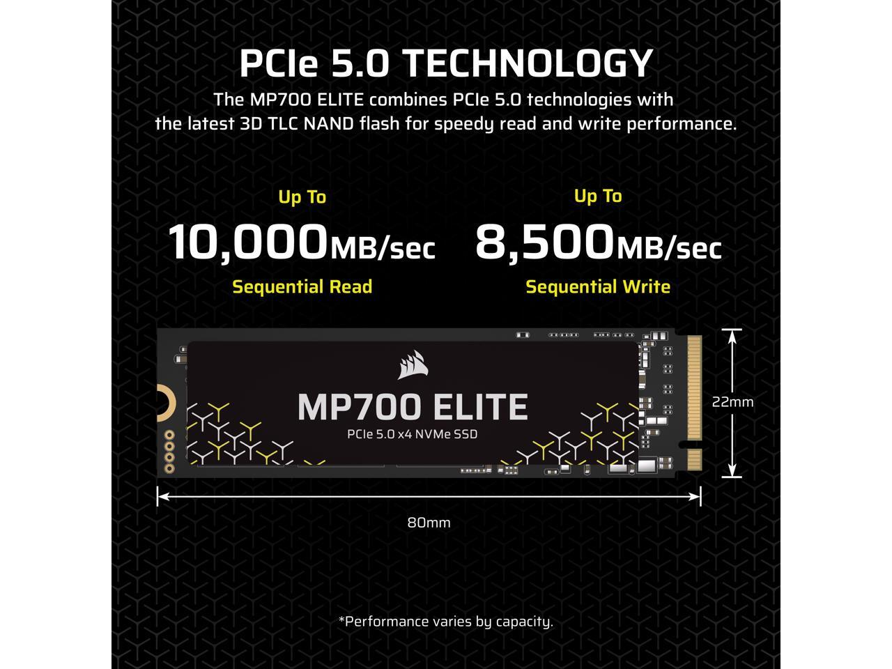 Corsair MP700 ELITE M.2 2280 4TB PCI-Express 5.0 x4 3D TLC Internal Solid State Drive (SSD) CSSD-F4000GBMP700ENH