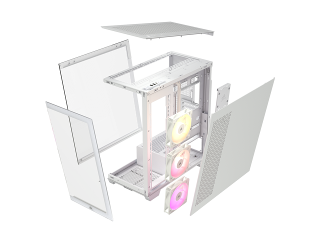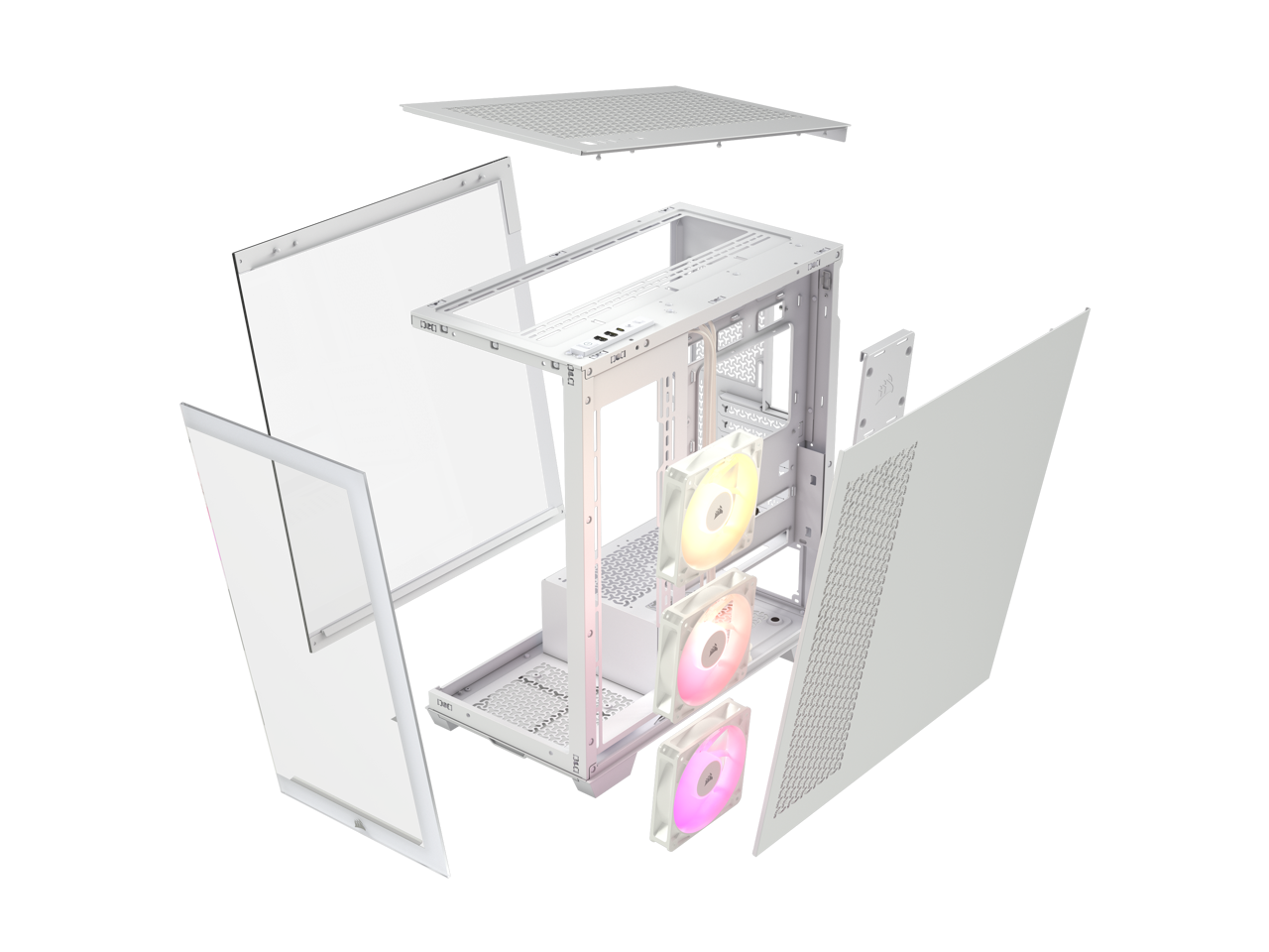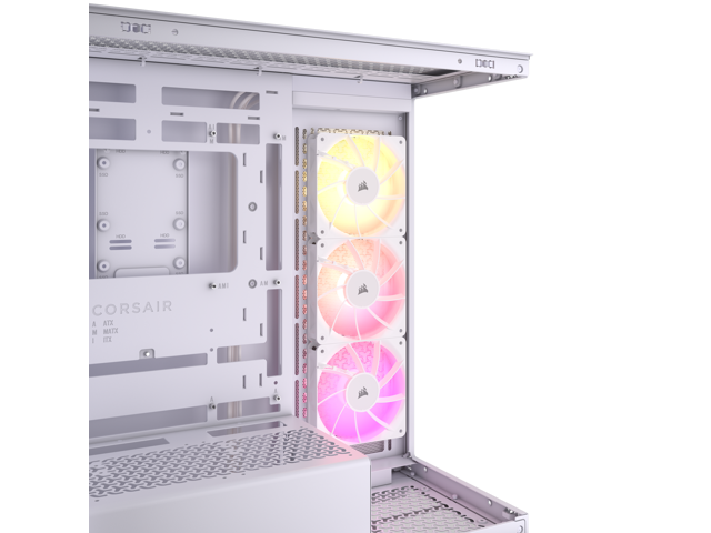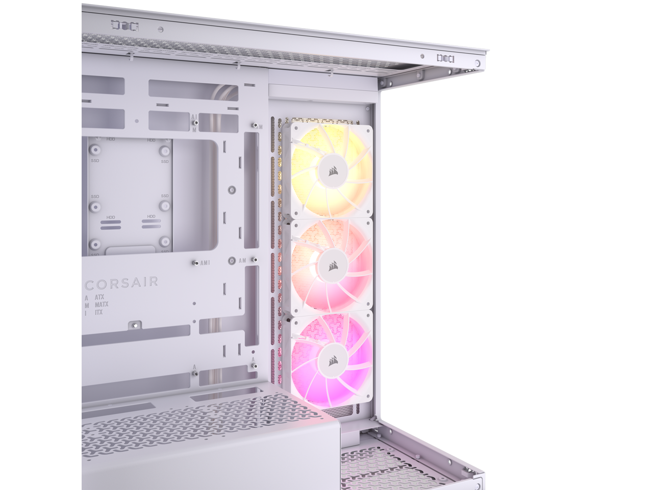 CORSAIR 3500X ARGB Tempered Glass Mid-Tower PC Case, White – 3x Pre-Installed RS120 ARGB Fans – Reverse Connection Motherboard Compatible – Fits up to 10x 120mm Fans