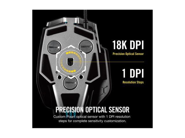 - CORSAIR’s Most Advanced Optical Gaming Sensor:Native 18,000 DPI, adjustable in 1 DPI resolution steps, gives you total sensitivity customization and ultra accurate tracking