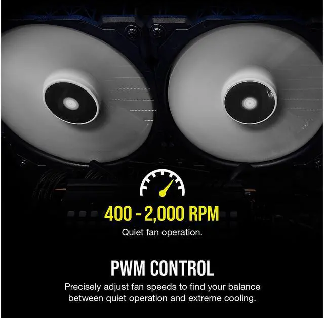 Precisely adjust your fan speeds between 400 - 2,000 RPM using PWM control, finding your balance between quiet operation and extreme cooling. |