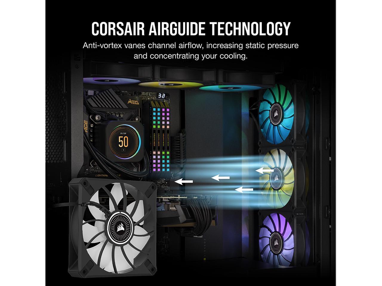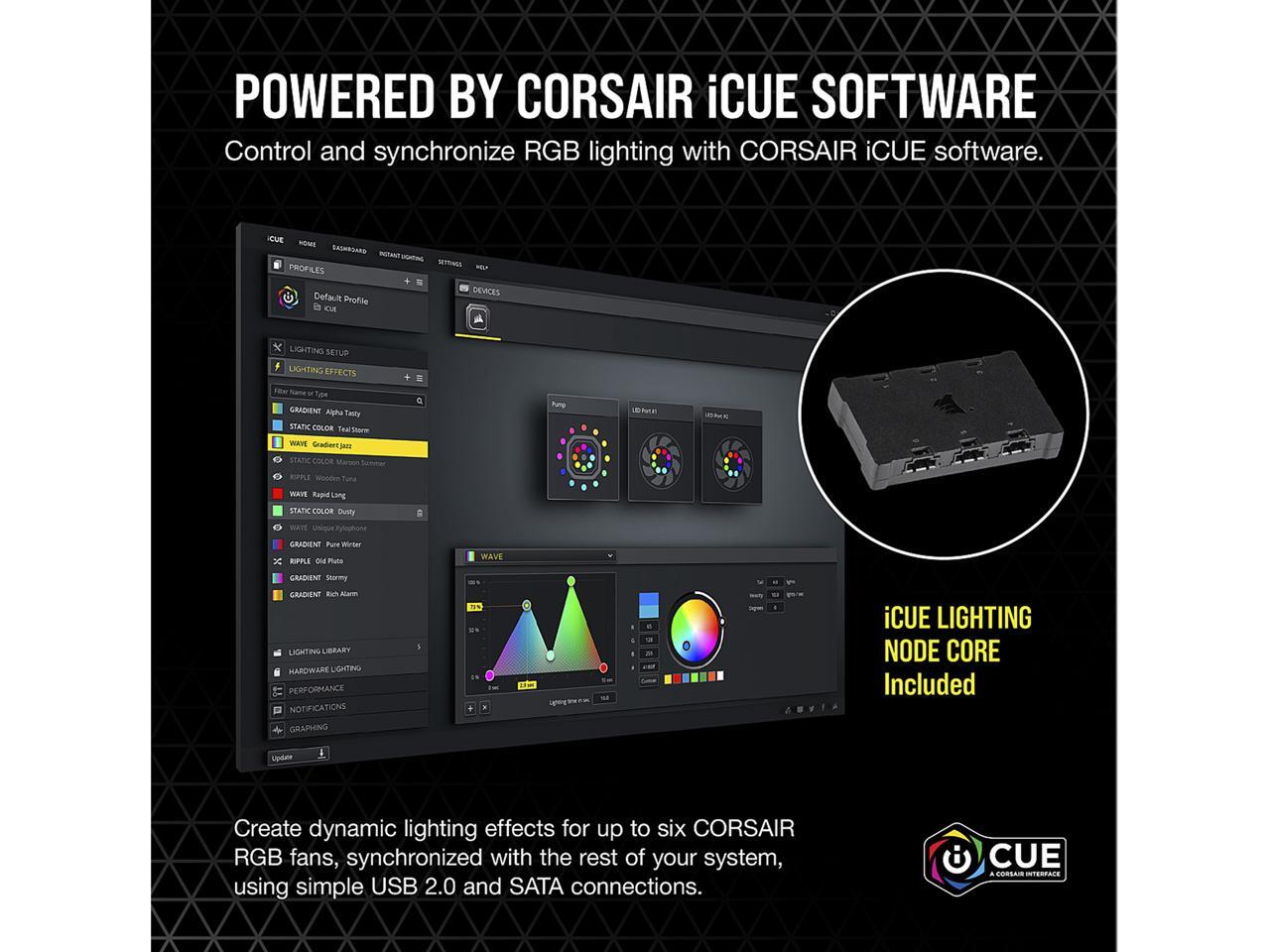 CORSAIR iCUE ML120 RGB ELITE Premium 120mm PWM Magnetic Levitation Triple Fan Kit with iCUE Lighting Node CORE - Black