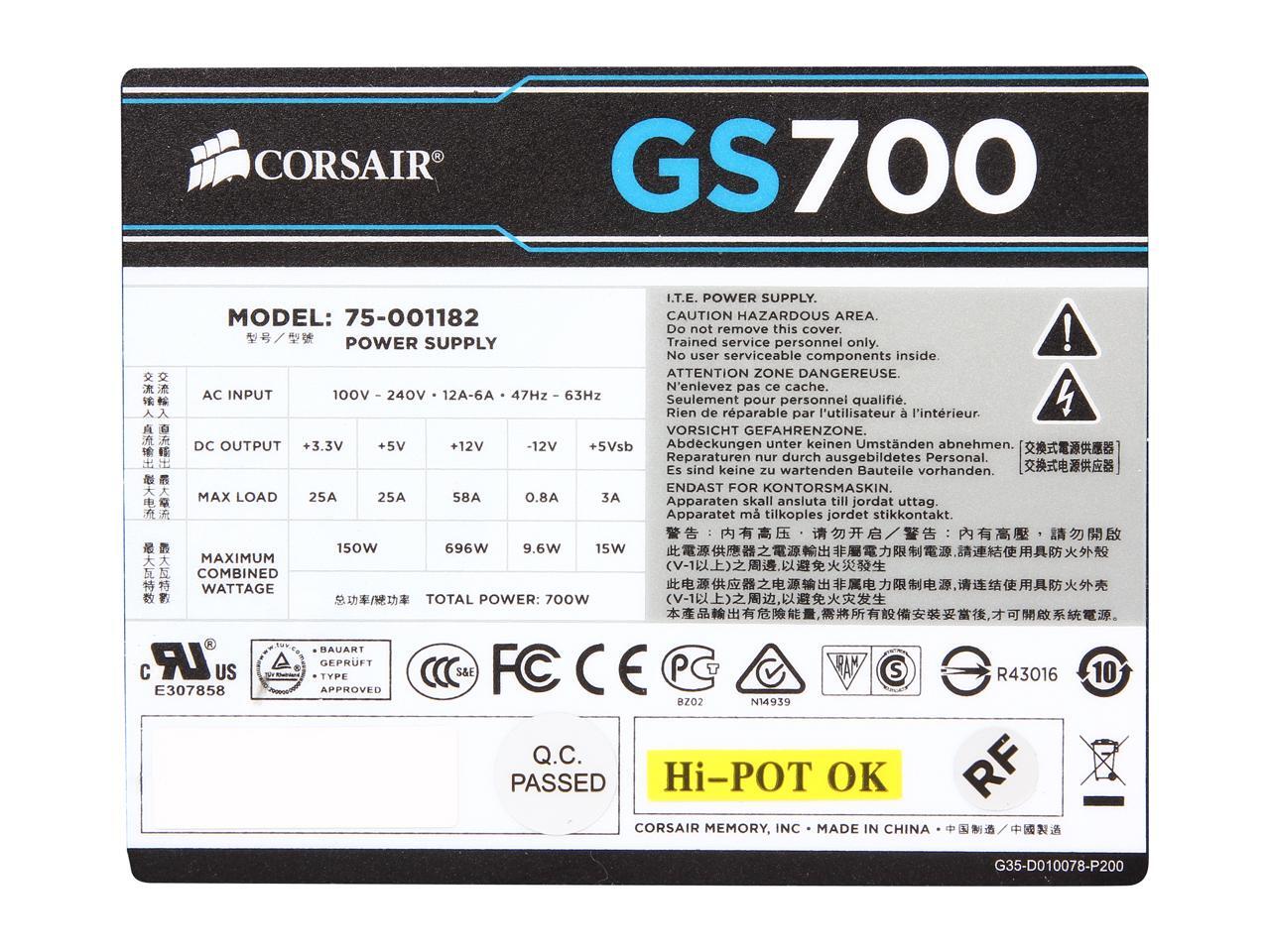 Corsair Certified CP-9020064-NA GS series GS700 700W ATX12V v2.3 SLI Ready CrossFire Ready 80 PLUS BRONZE Certified Active PFC Power Supply New 4th Gen CPU Certified Haswell Ready