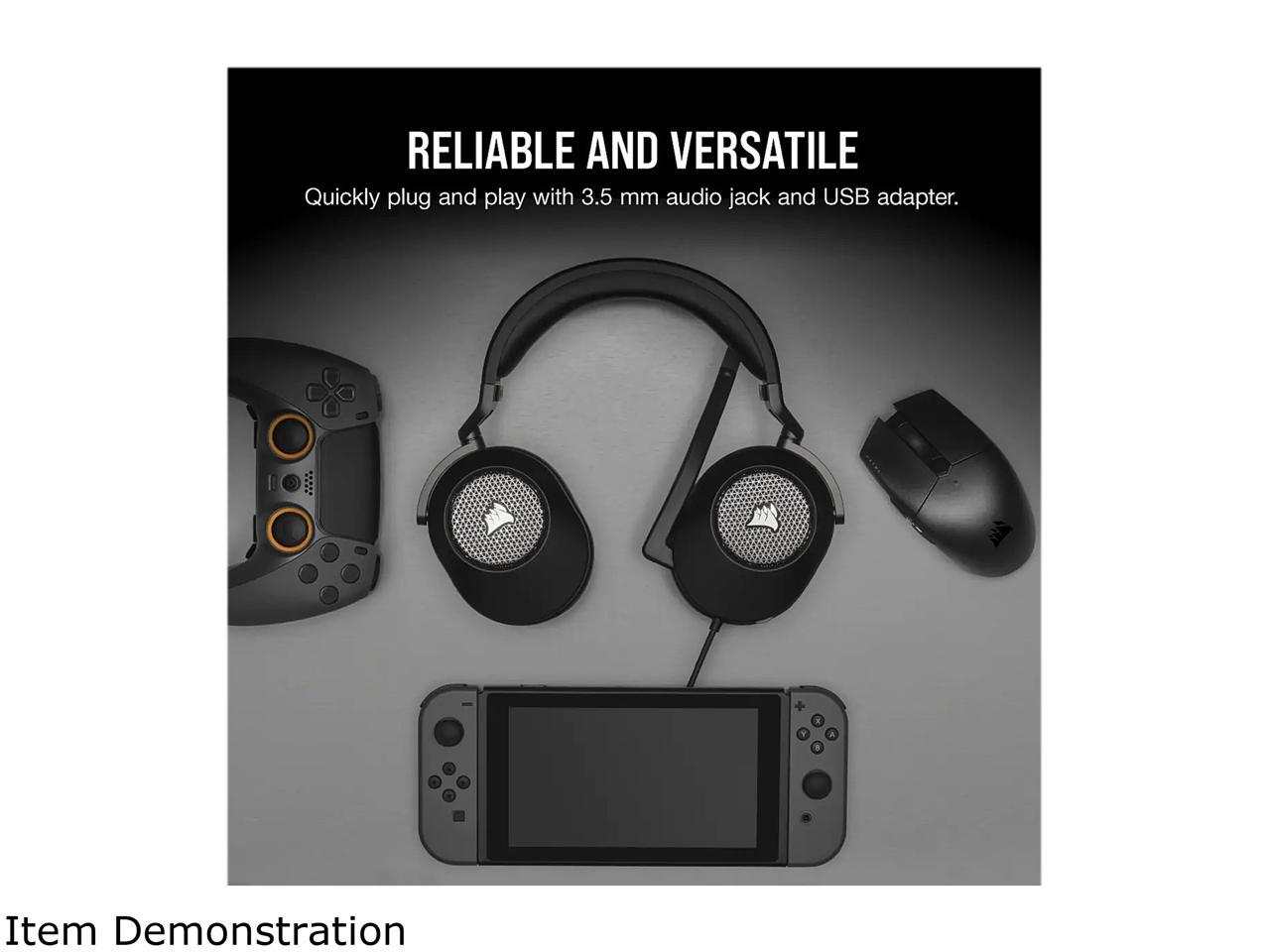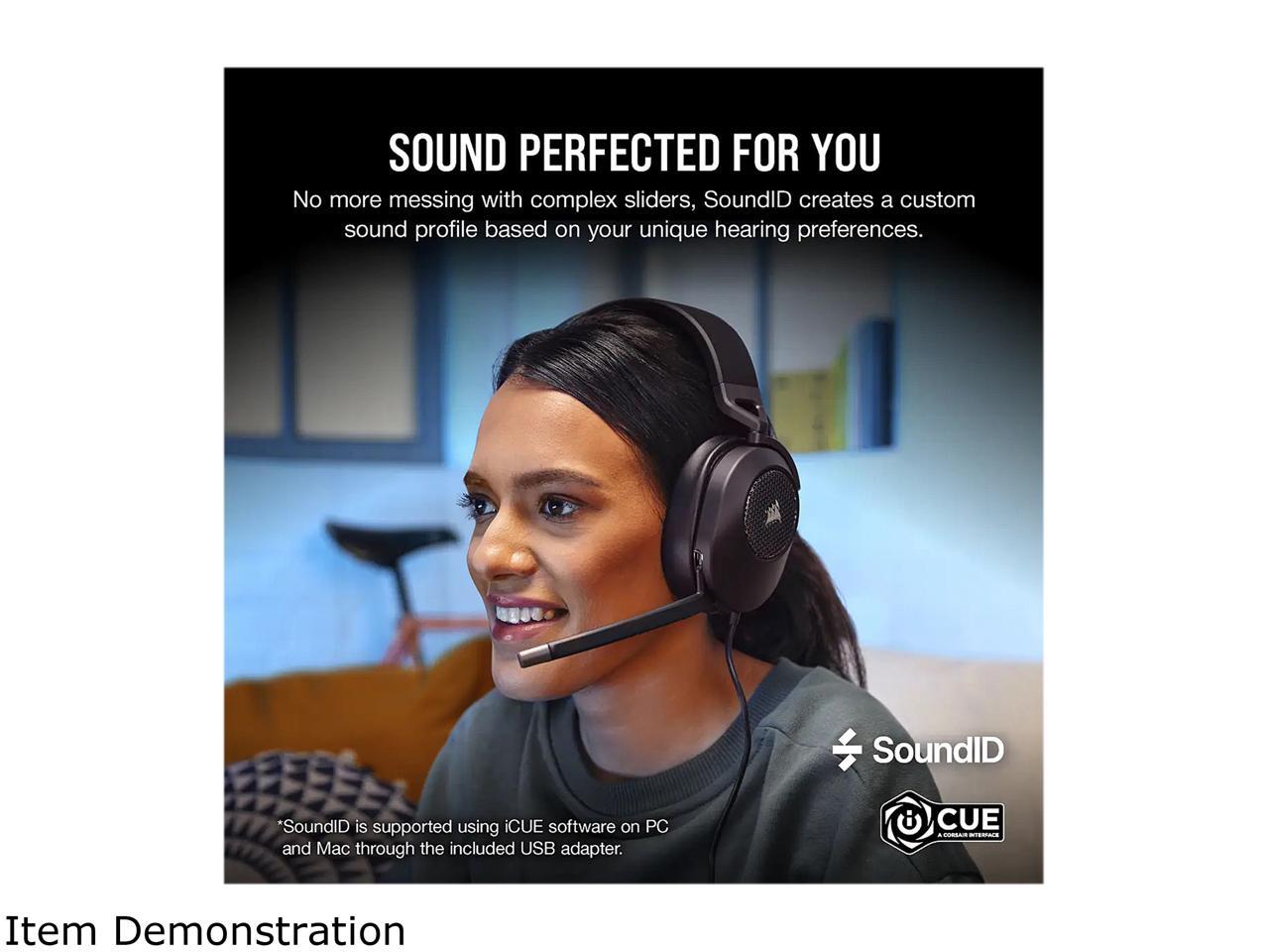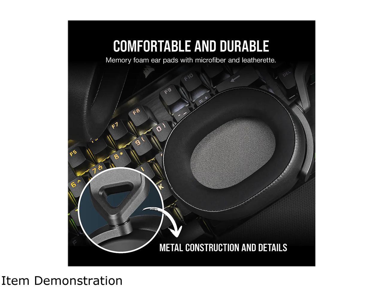 - The CORSAIR HS65 SURROUND Gaming Headset delivers all-day comfort and sound with memory foam leatherette ear pads, lightweight aluminum-reinforced construction, and Dolby Audio 7.1 surround sound on PC and Mac.