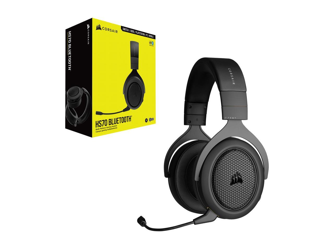 Corsair HS70 BLUETOOTH Wired Gaming Headset with Bluetooth (Wired Compatibility with Xbox/PlayStation and Wireless Bluetooth with PC/Switch/iOS/Android, Up to 30 Hours of Battery Life) Carbon