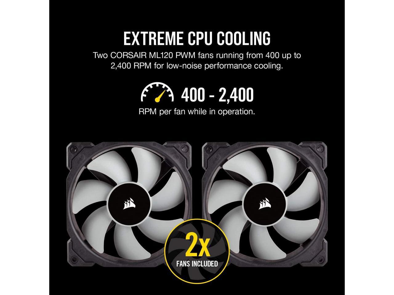 - Two 120mm CORSAIR ML Series magnetic levitation PWM fans deliver improved airflow for extreme CPU cooling performance