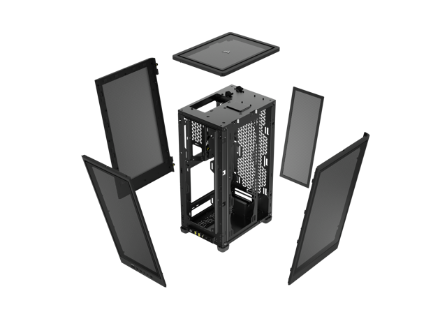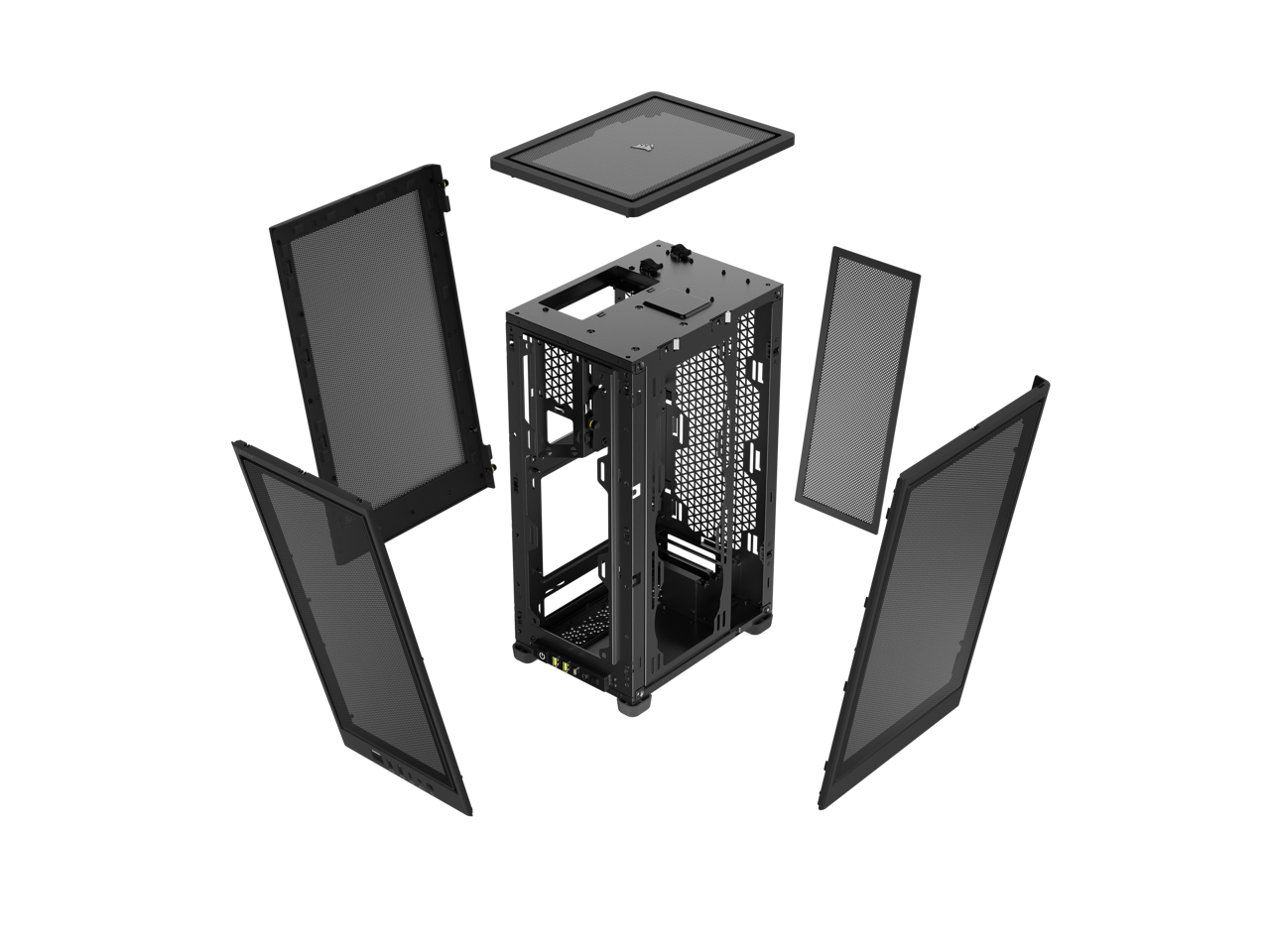 - House today’s highest-end PC hardware in a space-saving design ideal for small-form-factor builds, with abundant airflow thanks to removable mesh panels and premium CORSAIR build quality, in a case that’s small in size and big on cooling performance.