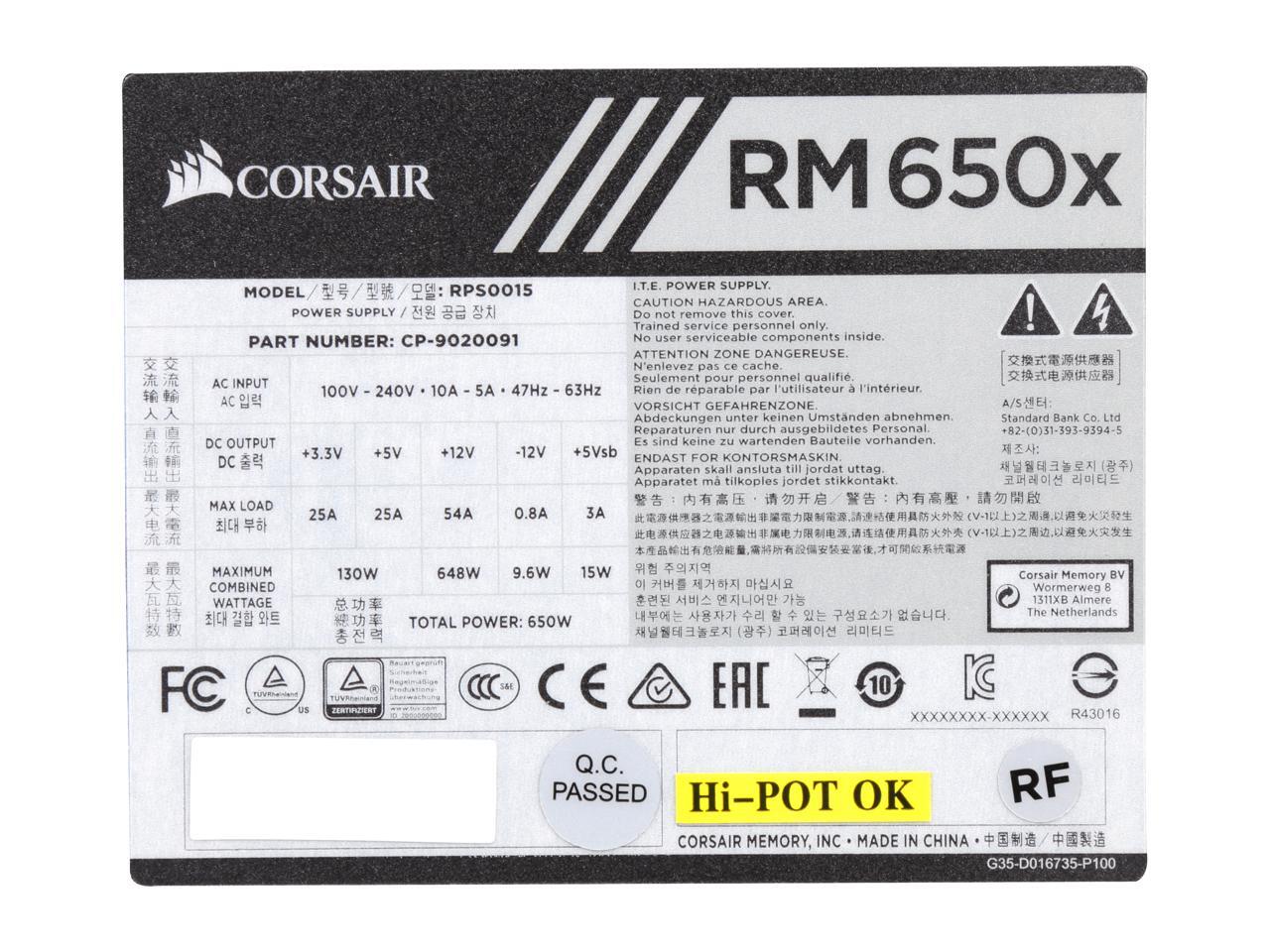 Corsair Certified CP-9020091-NA RMx Series RM650x 650W 80 Plus Gold Full Modular Power Supply