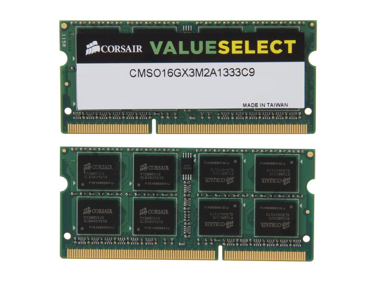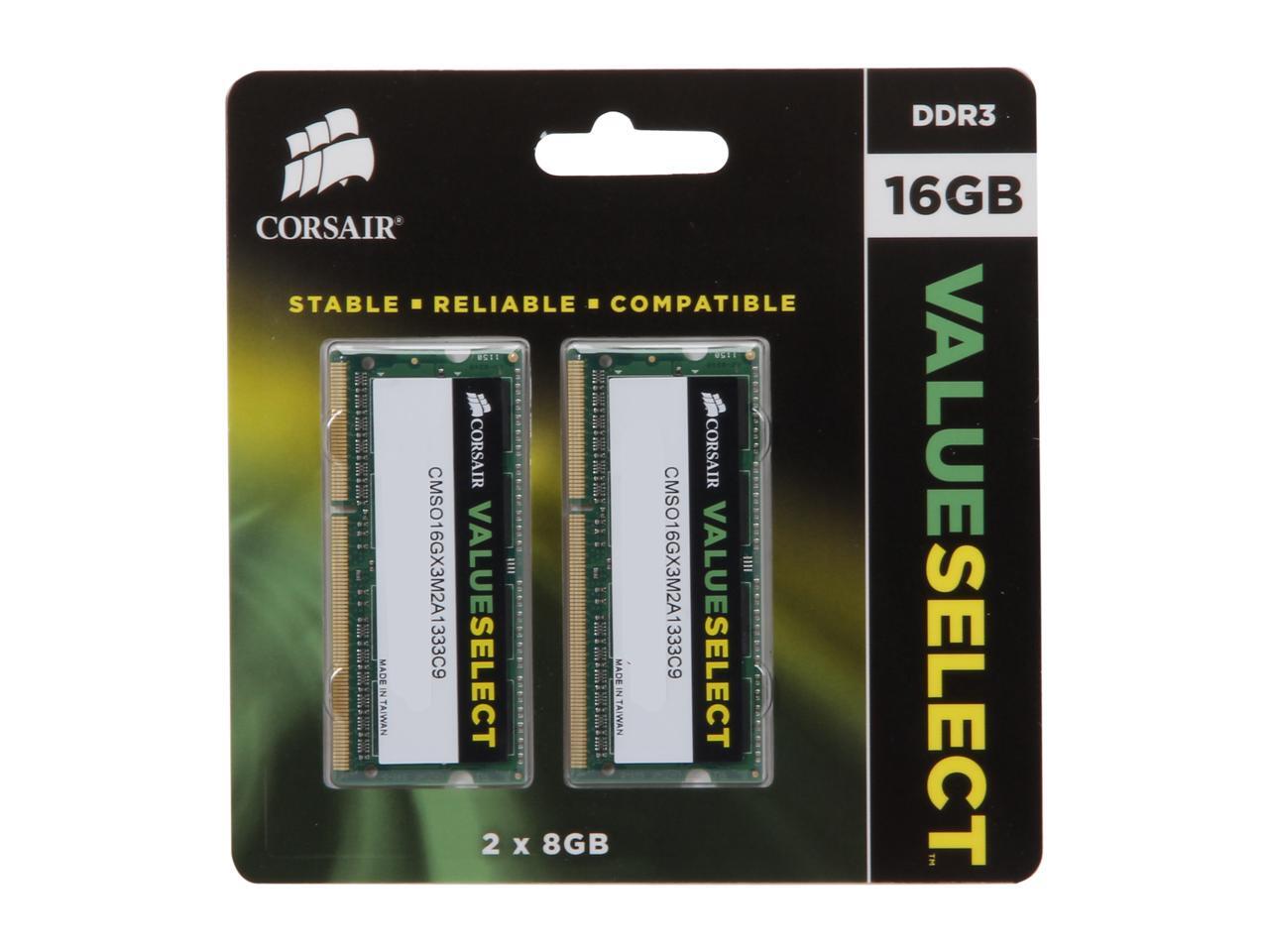 CORSAIR ValueSelect 16GB (2 x 8GB) 204-Pin DDR3 SO-DIMM DDR3 1333 (PC3 10600) Laptop Memory Model CMSO16GX3M2A1333C9