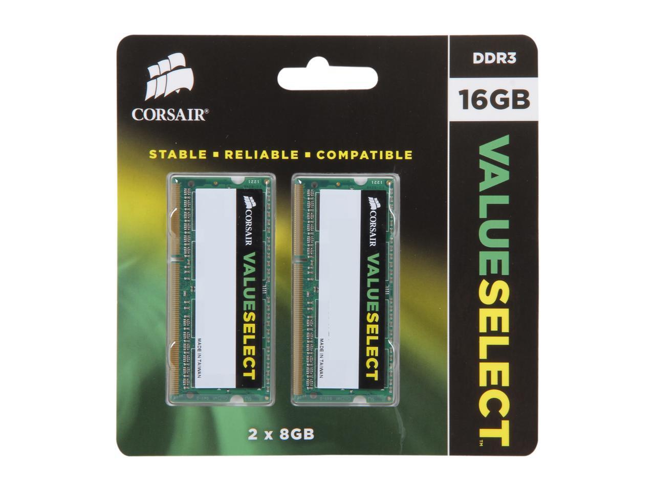 CORSAIR ValueSelect 16GB (2 x 8GB) 204-Pin DDR3 SO-DIMM DDR3 1600 (PC3 12800) Laptop Memory Model CMSO16GX3M2A1600C11
