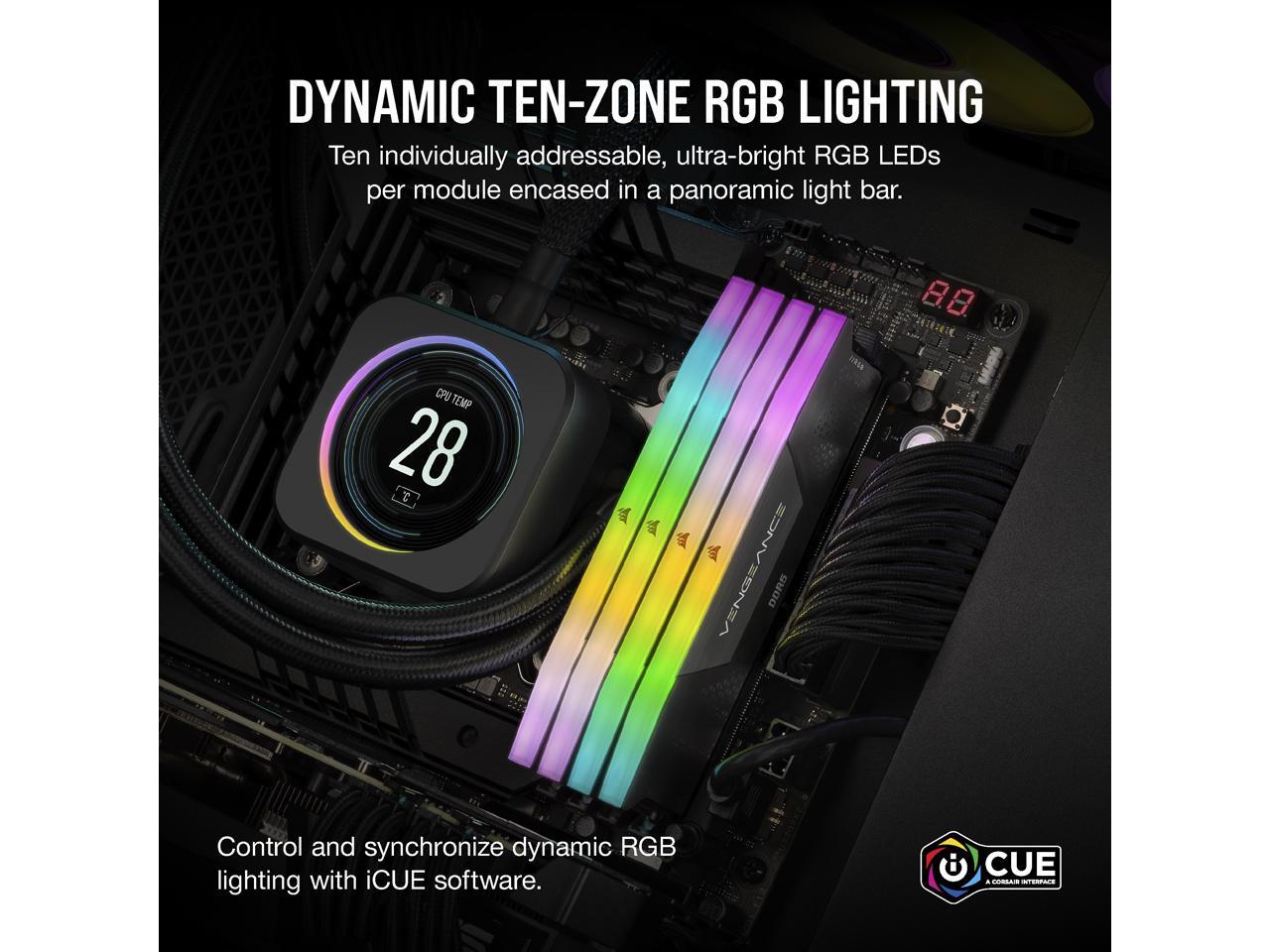 CORSAIR Vengeance RGB 64GB (4 x 16GB) 288-Pin PC RAM DDR5 5600 (PC5 44800) Desktop Memory Model CMH64GX5M4B5600Z36