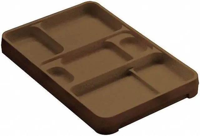 Tray, Overall Width 9 1/2 in, Overall Height 2 1/4 in, Overall Depth 2 1/4 in, Material Plastic, Number of Compartments 7, Product Type Rock Tray, Color Brown, For Use With 2000-CL, 2XJG3, 3000-CL, 31XM58, Handle Included No, Overall Length 14 1/4 in, NSF Certified No