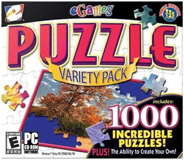 | Features | Puzzle Variety Pack features 3 top-selling Puzzle Master products: Puzzle Master 3, Puzzle Master 4, and Puzzle Master 5. With this incredible combination, enjoy over 1,000 puzzles of exotic places, animals, landscapes, flowers, historic sites and more! Plus the ability to create your own puzzles and send them to friends! 6 piece styles to choose from Support for MP3 and WAV files! Screensaver and wallpaper feature! BONUS 3D Puzzles! |