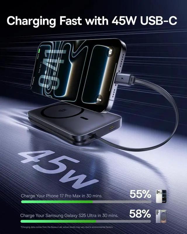 All-in-One Power, 45W & Qi2.2 Fast Charging, Charging Your Life On-the-Go!