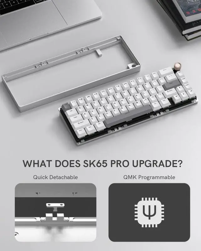 - [3 Modes Connection & Widely Application]SK65 wireless keyboard supports bluetooth, 2.4 GHz and usb-c wired connection. This bluetooth keyboard can work with multi device, pc, laptop, tablet, phone, switch, xbox, and playstations. SK65 is both compatible for Windows OS and mac OS, including Windows XPWin7Win8Win10all macOS. We build in 3750mAh battery to extend its battery life. It takes 6-8 hours on a single charge, while it can last for over 200 hours