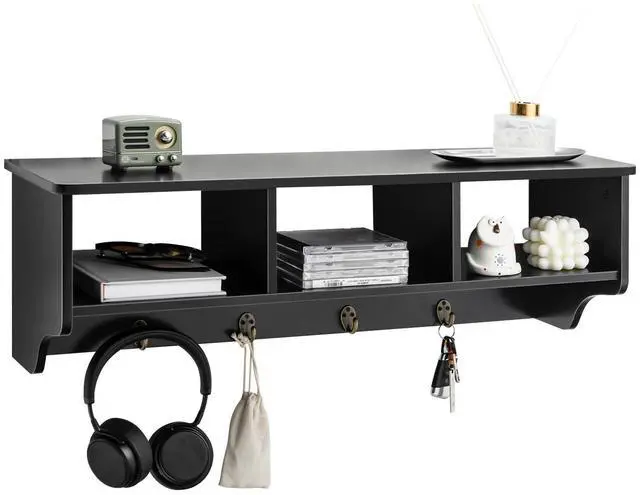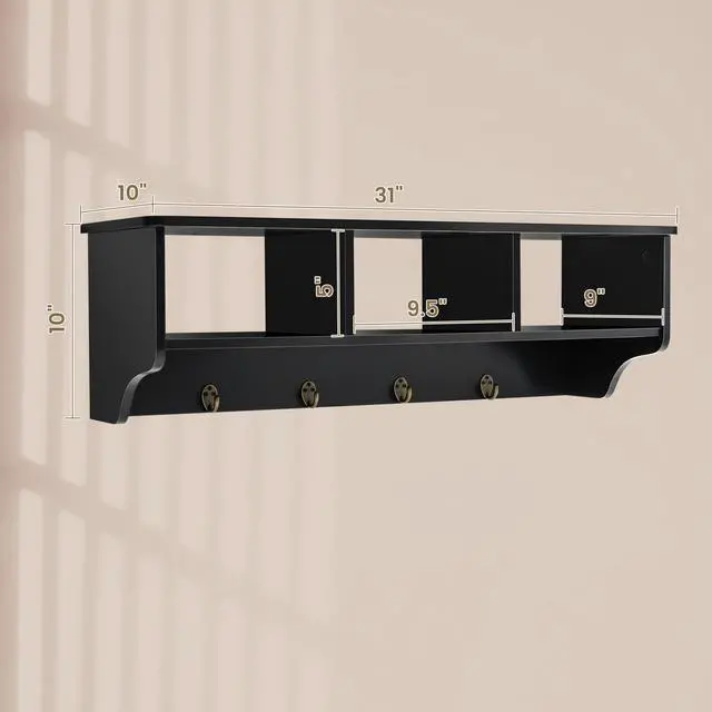 Are you fed up with the messy entryway? Good news! With this versatile wall-mounted coat rack, you dont have to give the space a makeover but welcome a pleasant change since it keeps everything in its place. If you are in a hush, you can grab the items on the entryway shelf & hooks to get prepared quickly and easily. Meanwhile, the wide and flat shelf is also suitable for holding decorations to adorn the space, such as pictures and potted plants. Whats more, with the easy-to-follow instruction, it is totally a breeze for you to put the wall cabinet together. It is easy to hang as well thanks to the sturdy hooks and matching wall-mounting accessories.