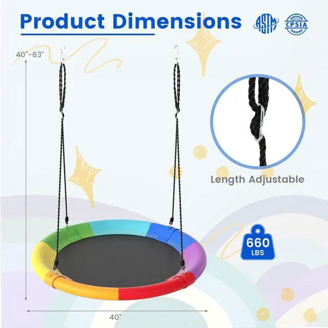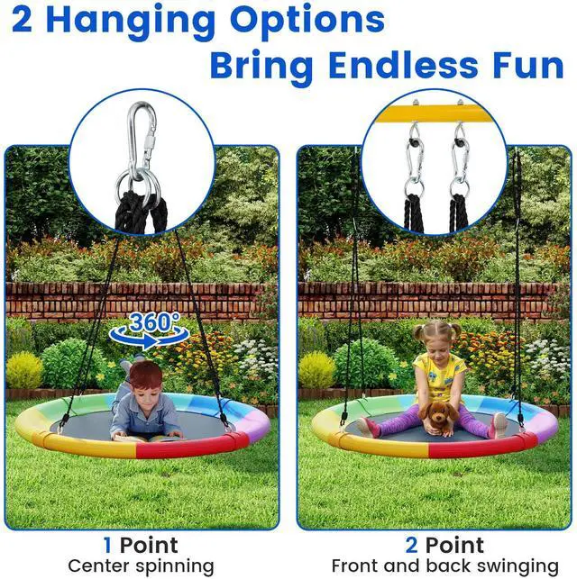 Year-round Fun for Children: Our giant 40'' flying saucer tree swing is popular among children and adults! Its unique design and attractive appearance allow for exciting swinging year-round. There is no doubt that the entire family could harvest happiness from this product.
