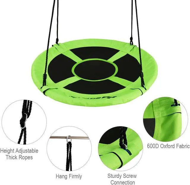 Made with a sturdy steel frame and heavy-duty 600D oxford fabric for comfort, this indoor/outdoor swing will have your kids playing for hours on end. It is built to withstand 700 lbs of static weight and features a round base with strong fabric that will last. And you can freely adjust the height of the rope to meet different needs. It can be easily connected to trees or swing hangers. Your children can safely sit, lie down, play, read and chat on our swing. This pleasing appearance and practical application will definitely satisfy your needs. It is the best gift for your kids!