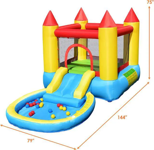 Our inflatable water slide is a perfect gift for children to spend leisure time. Features a water slide, a huge jumping area and a splash pool, children can not only enjoy multiple pleasures, but also exercise their balance. The mesh walls around the jumping area ensure the children's safety while playing and satisfies the ventilation requirement well. Come with a hose, the inflatable castle can be used as a water park to make children feel cool even on the hottest summer. In addition, the intimate accessories can also give you more help. Don't hesitate to buy one!