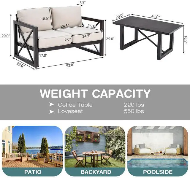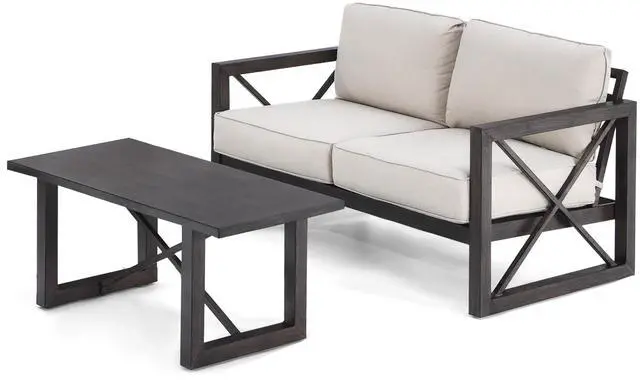 Cozy up your outdoors with our 2-piece outdoor loveseat and coffee table set!