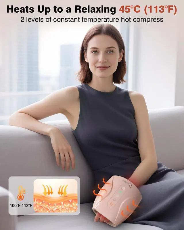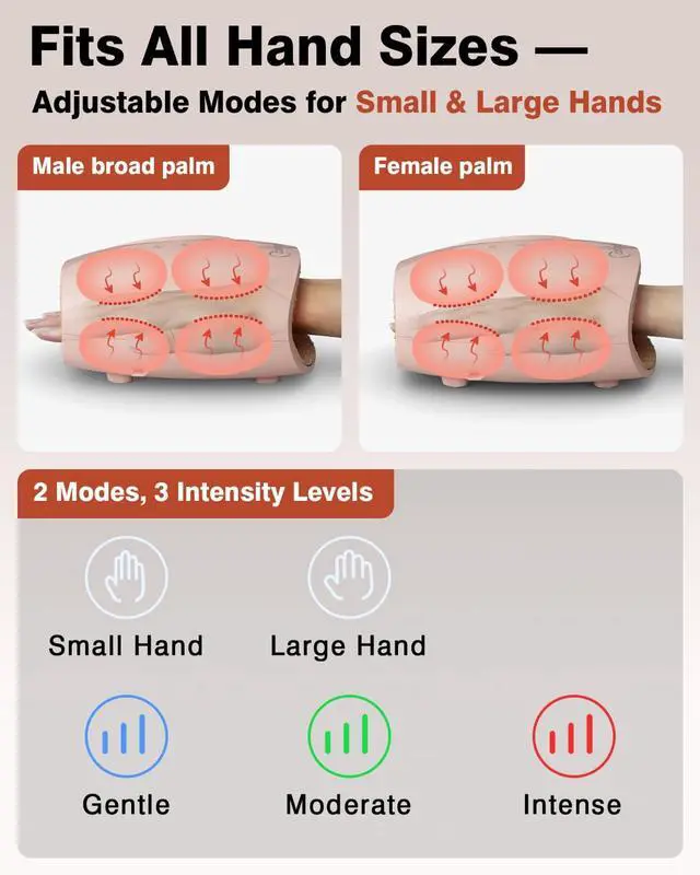 Hand Massager, Cordless Electric Hand Massager for Arthritis and Carpal Tunnel, 6 Levels Therapy Massager with Heat and Compression, Hand and Wrist Massager Machine for Pain Relief