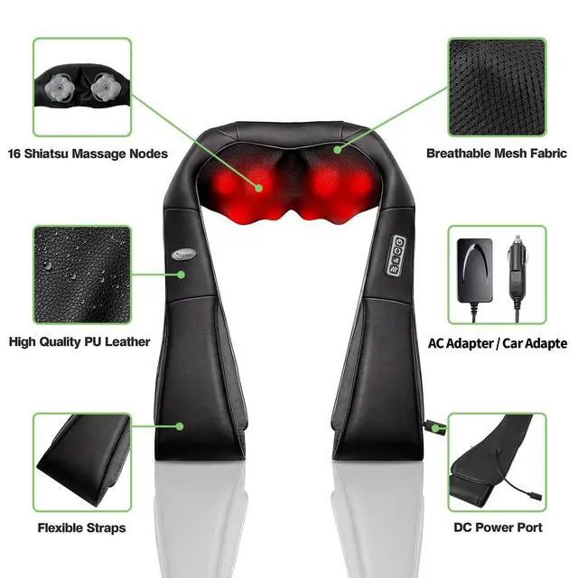 Discover the ultimate relaxation with this advanced neck massager! Featuring an intelligent 3-speed adjustment? that lets you customize intensity from gentle to deep tissue therapy. With 16 massage nodes? strategically placed to target pressure points across your neck and shoulders, it delivers a comprehensive kneading experience.