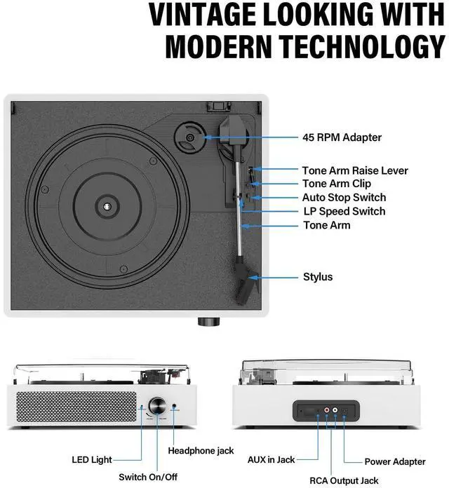 - Embrace Nostalgia with Our Retro Turntables - Featuring Built-in Speakers, Bluetooth Connectivity, and 3-Speed Vinyl Playback.
