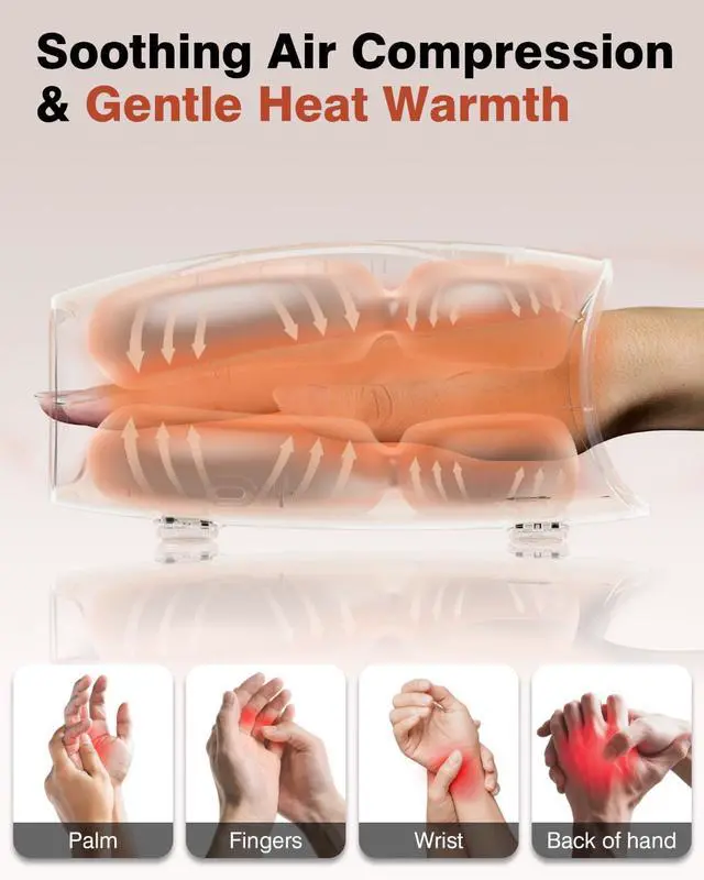 Hand Massager, Cordless Electric Hand Massager for Arthritis and Carpal Tunnel, 6 Levels Therapy Massager with Heat and Compression, Hand and Wrist Massager Machine for Pain Relief