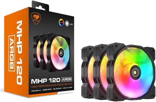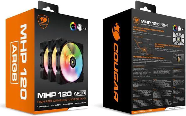 With the built-in 5V-ARGB ports and 9 ARGB lamp beads, COUGAR MHP 120 ARGB cooling fan provides various and colorful lighting effects through the fan blade that deliver a powerful and bright RGB lighting experience.
