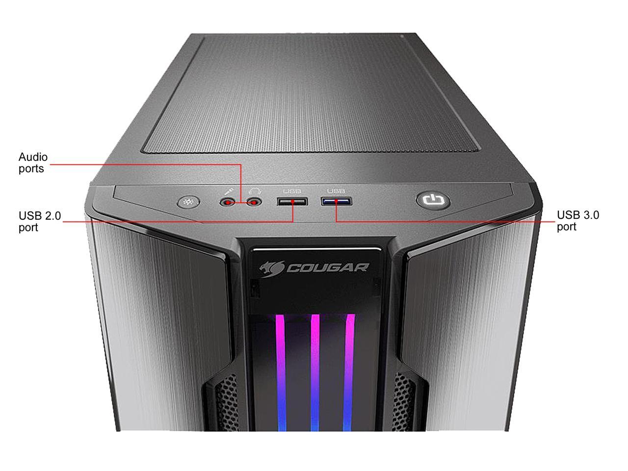 1 x USB 2.0 / 1 x USB 3.0 / Audio / RGB Control Button Front Ports