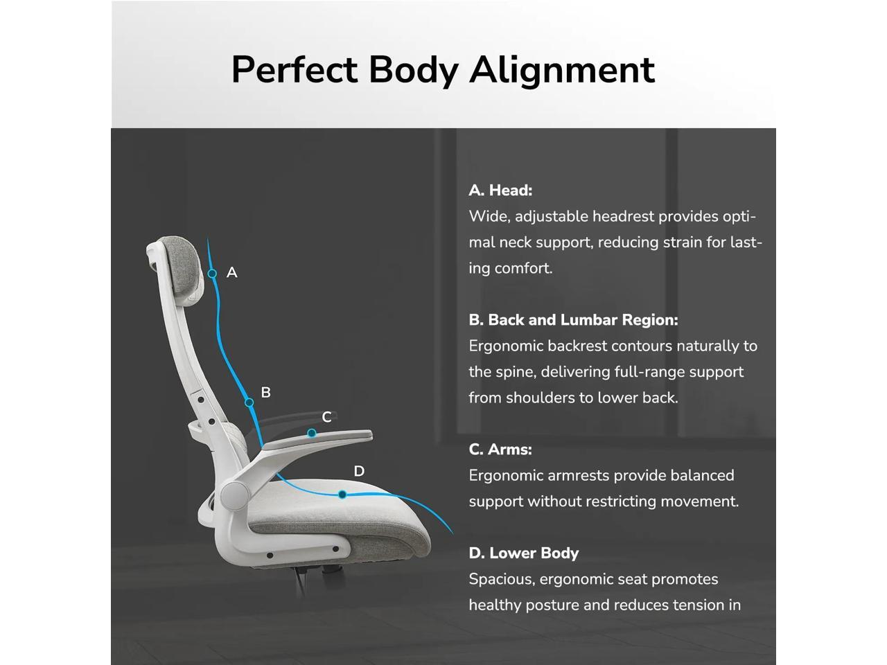 - Ergonomically contoured lumbar support design.