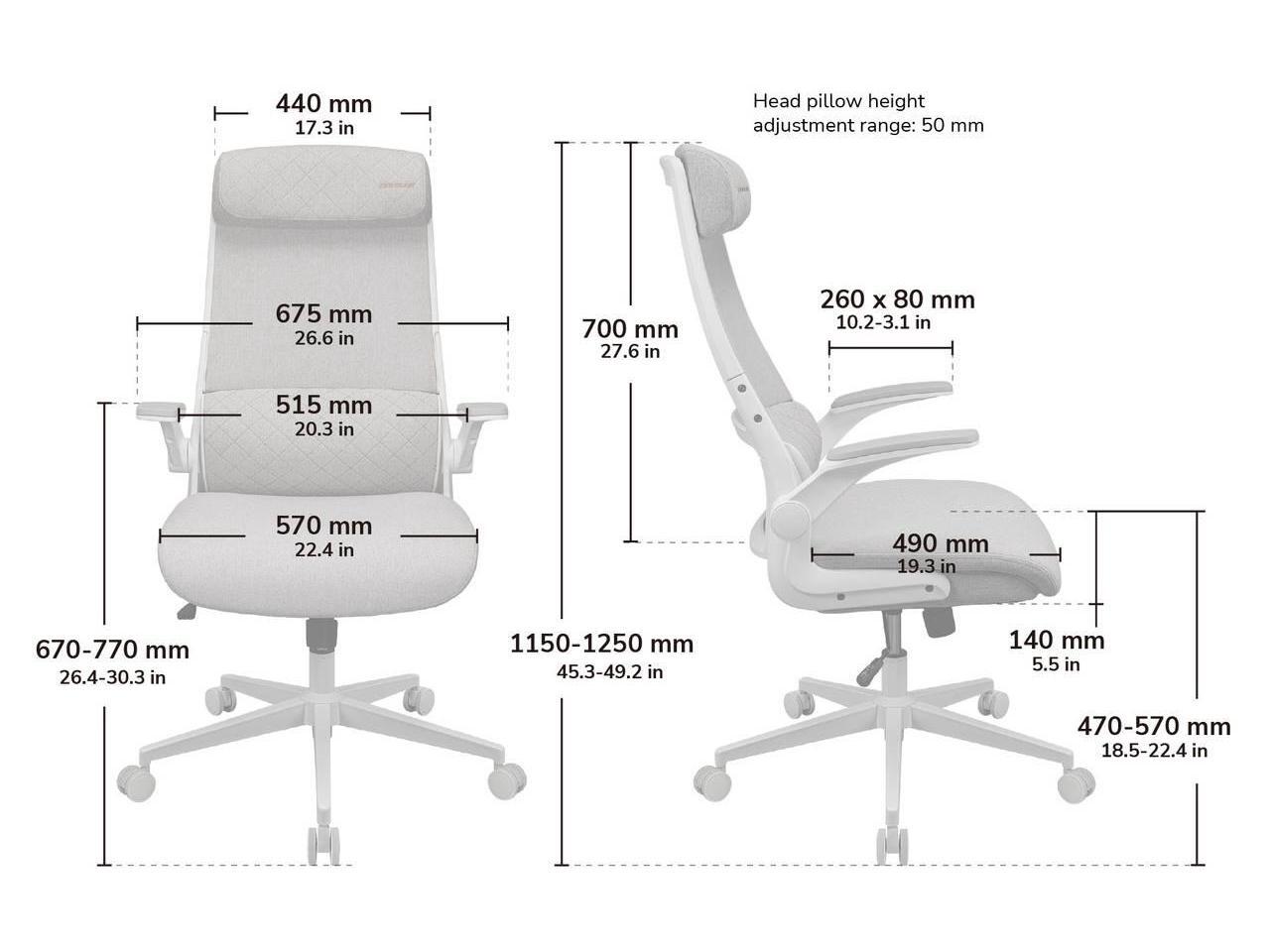 COUGAR Stryder Gray - Ergonomic Chair - Wider Adjustable Headrest - Flip-up Armrest - Imitation Linen Upholstery, Gray