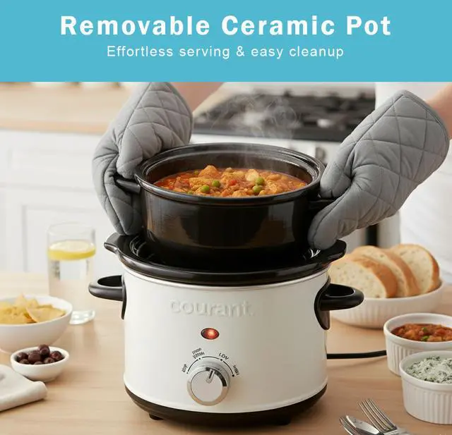 Mini 1.6 Quart Capacity for Personal Meals: This ideal compact slow cooker is perfect for single personal portions, appetizers, sauces, and side dishes. A must-have countertop appliance for small kitchens, dorms, or couples.
