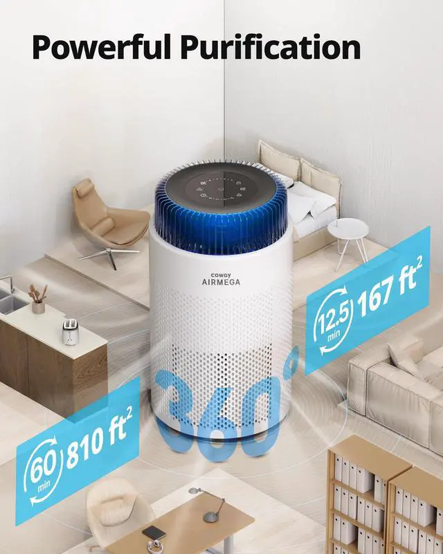 Air Purifiers for Home up to 810 ft², HEPA Filter and Carbon Filter for Smoke, Allergies, Pet Dander, Odor, AQI Monitor, Auto Mode, Timer, Filter Indicator, Night Light, 3yr Warranty, 100 White